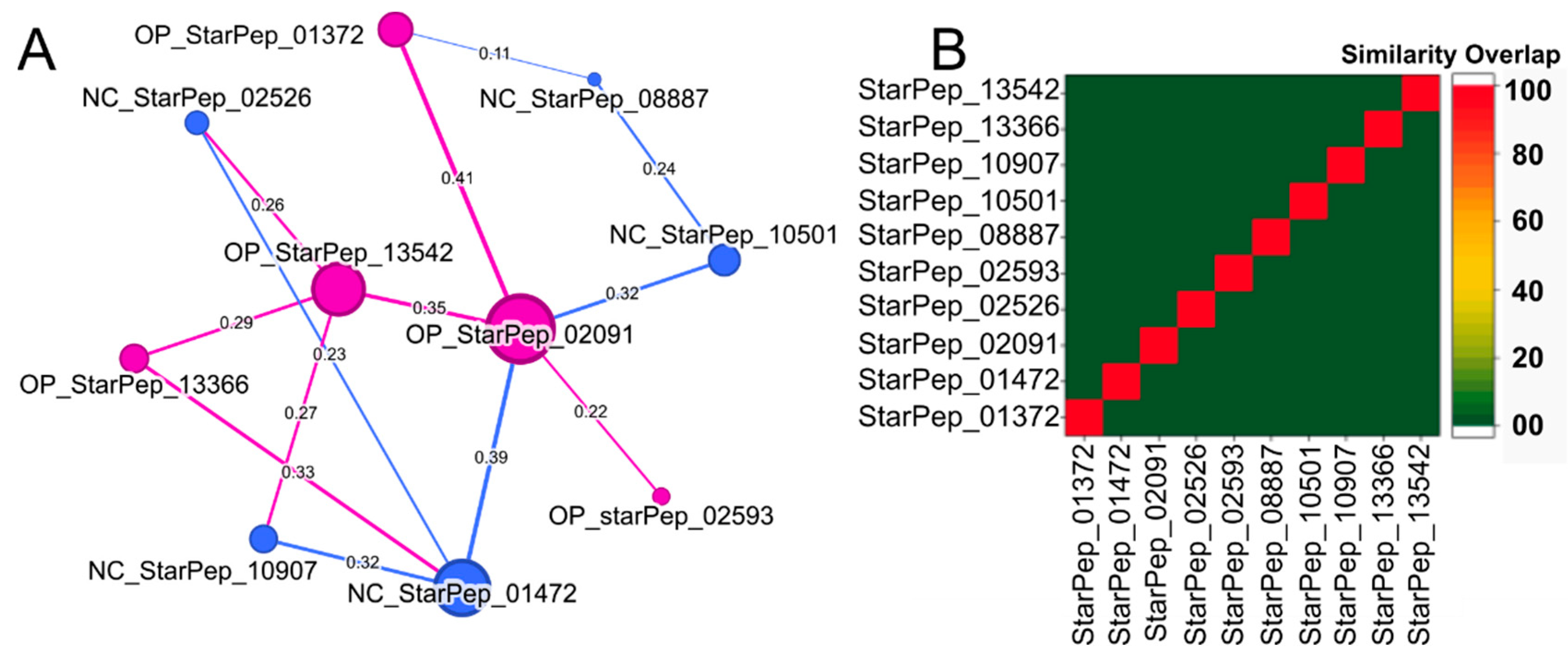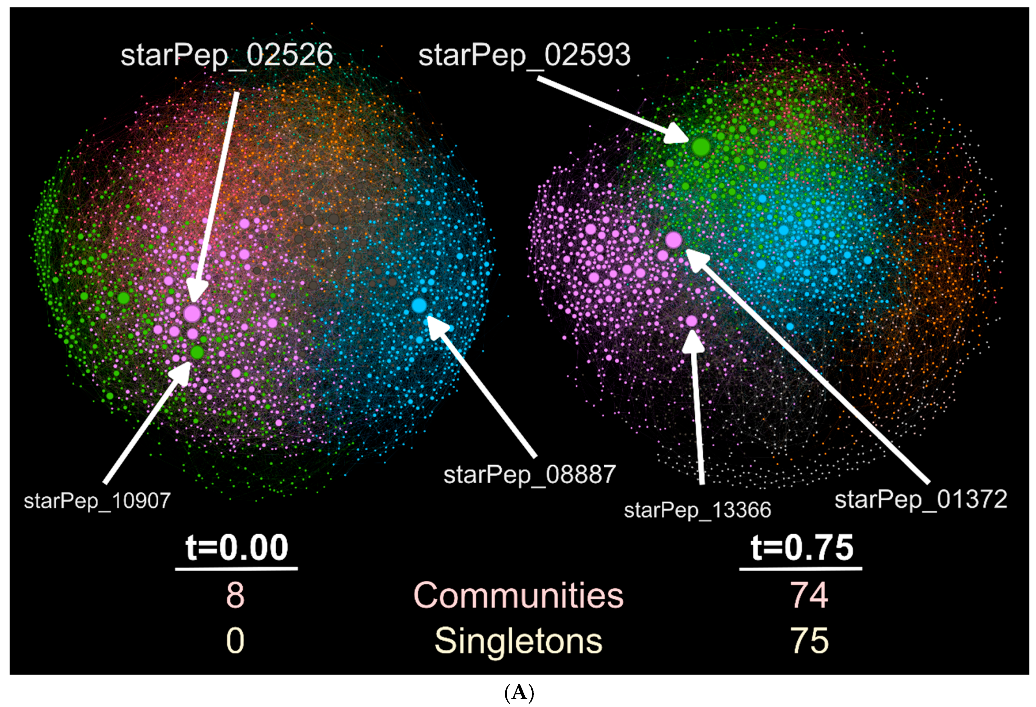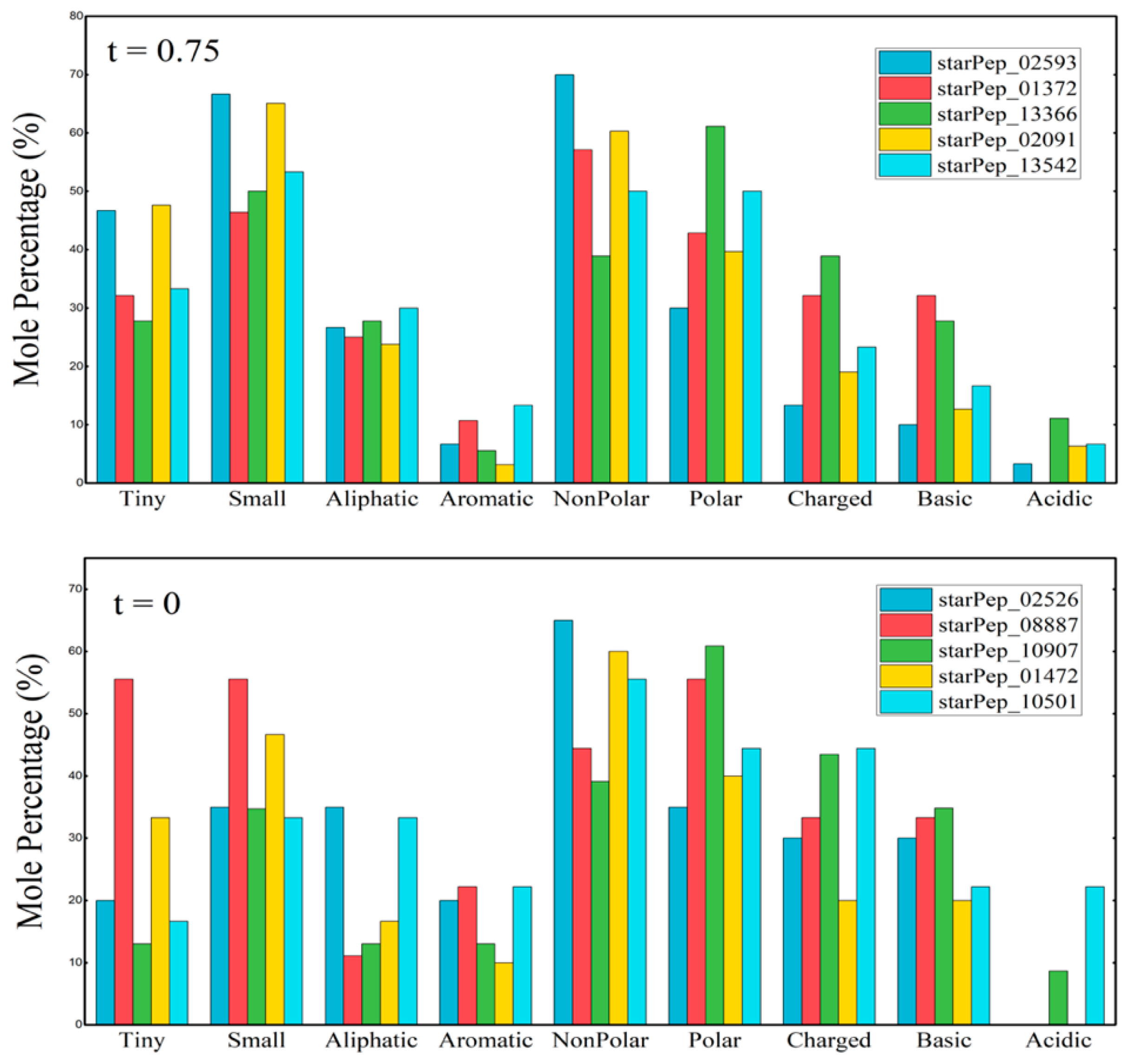 - StarPep_02526—D51 synthetic AMP designed via linguistic model, amphipathic, active against Gram-positive/negative bacteria [82]. Seq: “FLFRVASKVFPALIGKFKKK”.