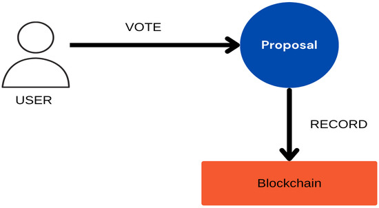 On-chain governance represents a model in which governance procedures are fully integrated into the blockchain protocol itself. Under this approach, participants (typically token holders or network validators) can propose and vote on changes to the system using blockchain-native mechanisms, as can be seen in Figure 6. All proposals, votes, and decisions are recorded immutably on-chain, and approved actions are automatically executed via smart contracts without requiring human intervention [29,32].