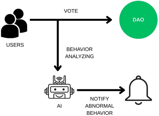 - Ikeda, Y.; Hadfi, R.; Ito, T.; Fujihara, A. Anomaly detection and facilitation AI to empower decentralized autonomous organizations for secure crypto-asset transactions. AI Soc. 2025, 40, 3999–4010. [Google Scholar] [CrossRef]