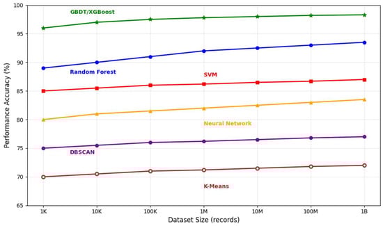 Figure 2 illustrates the performance evolution of different machine learning approaches across varying dataset sizes, demonstrating the scalability advantages of ensemble methods in large-scale OSINT operations.