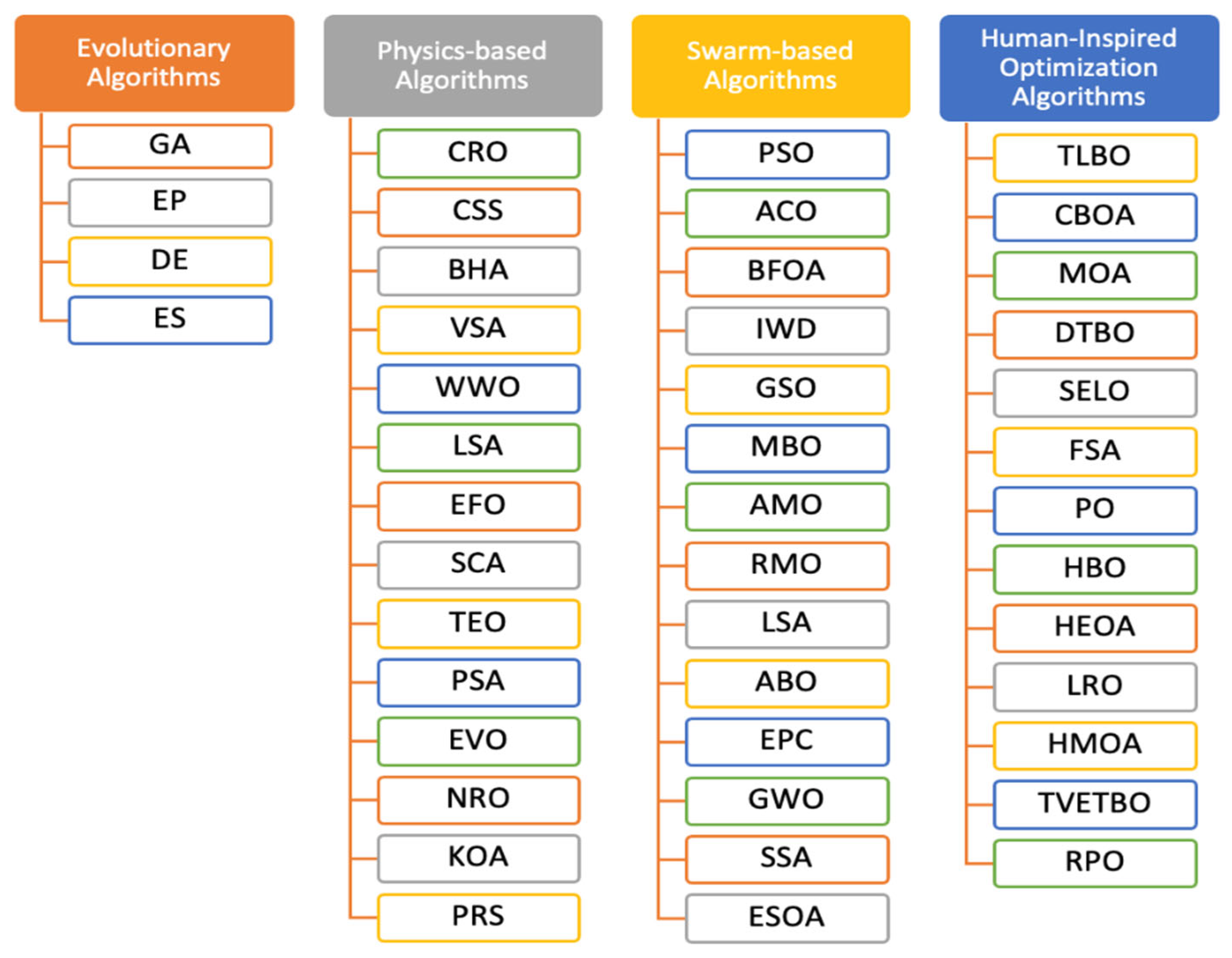 - Selvam, R.; Hiremath, P.; Cs, S.K.; Ramakrishna Bhat, R.; Tomar, V.; Bansal, M.; Singh, P. Metaheuristic Algorithms for Optimization: A Brief Review. Eng. Proc. 2023, 59, 238. [Google Scholar] [CrossRef]