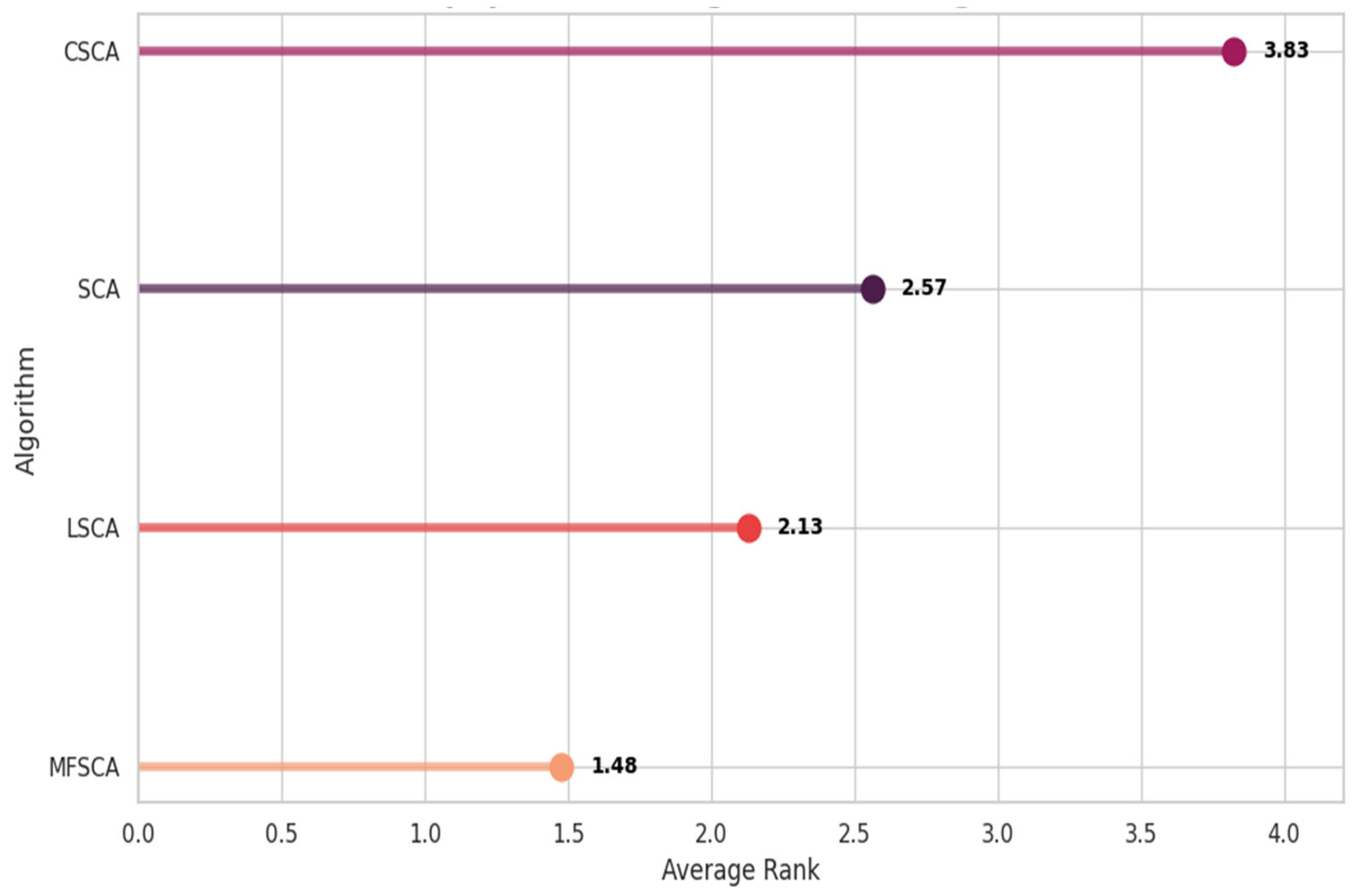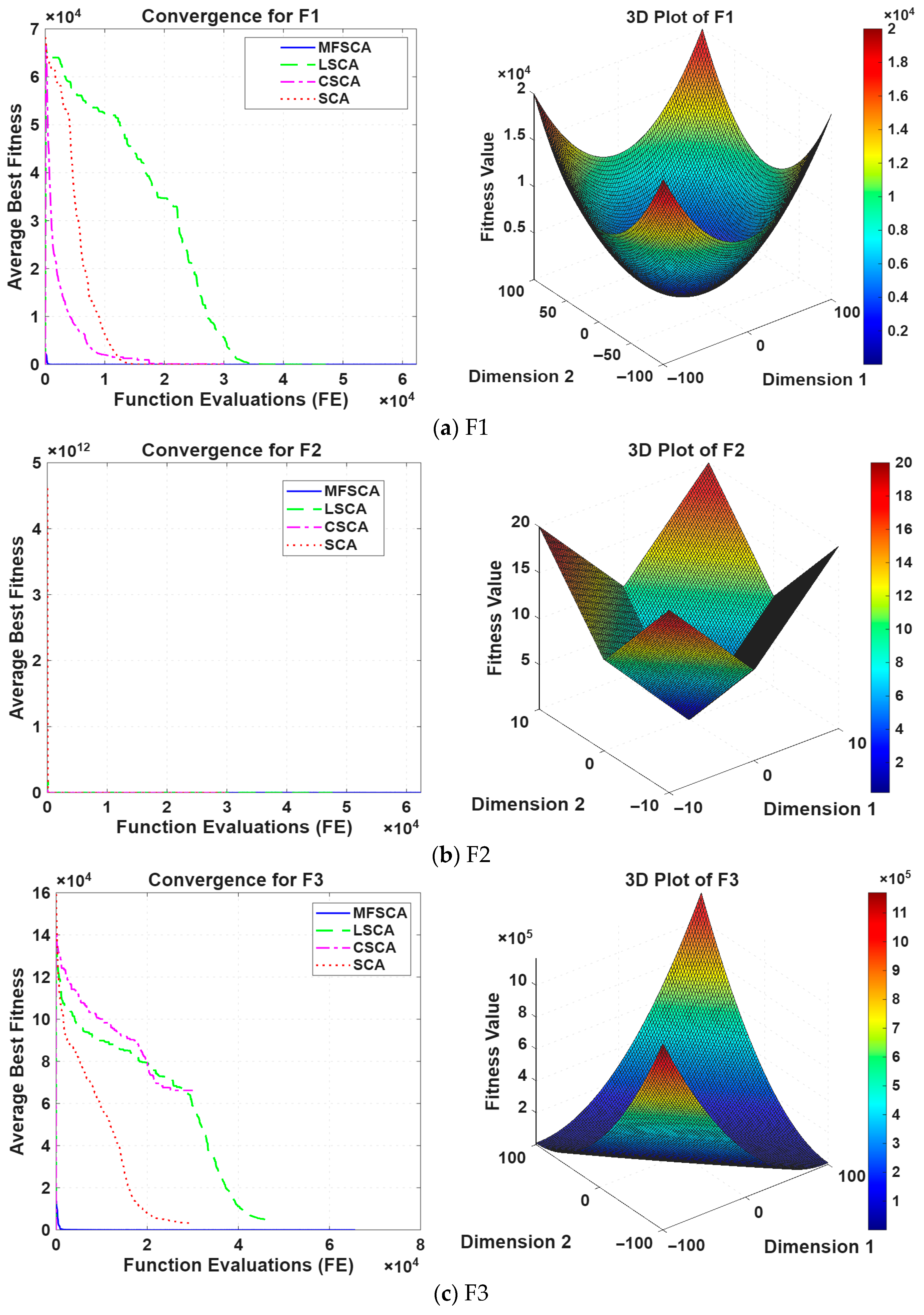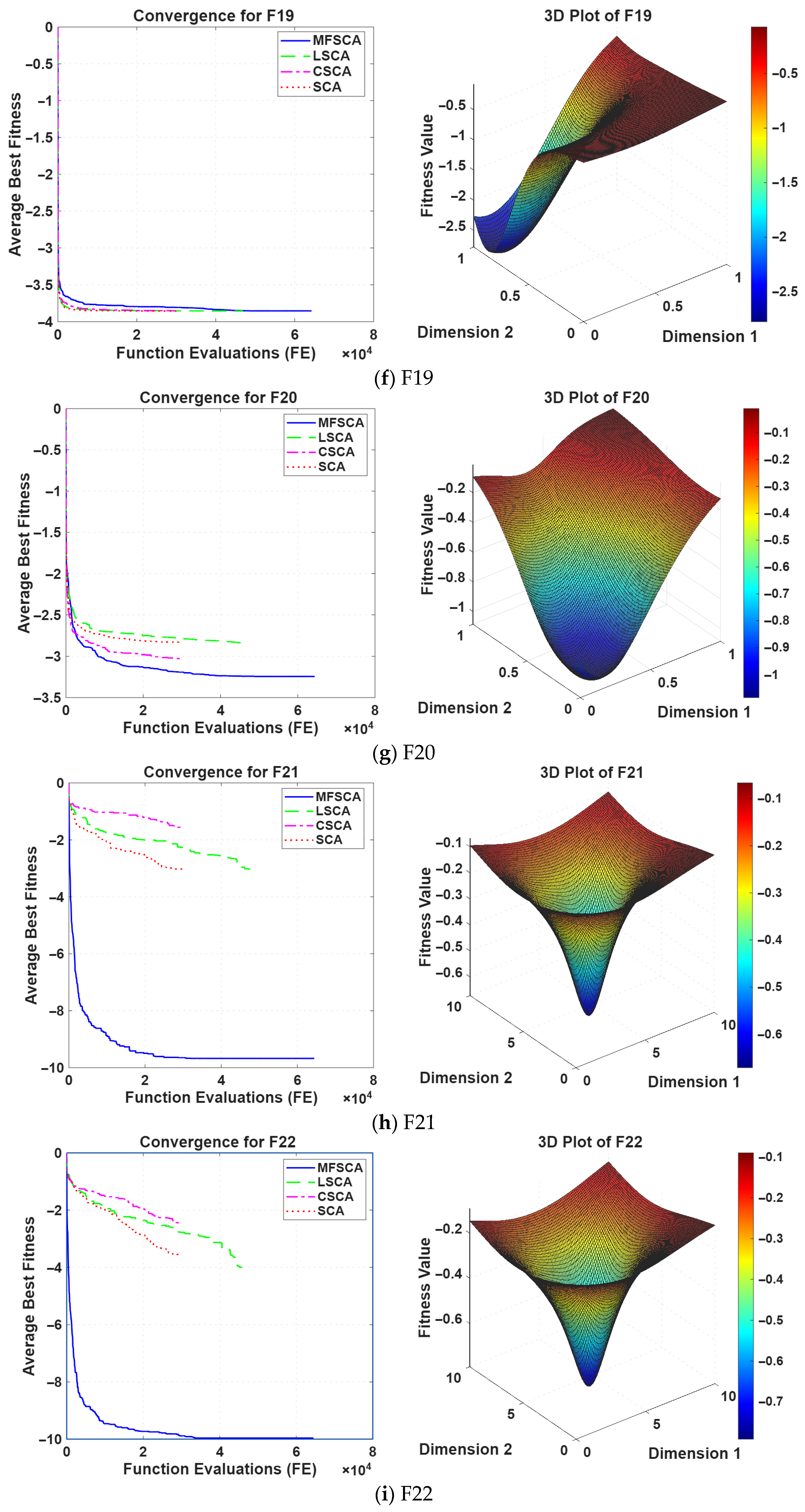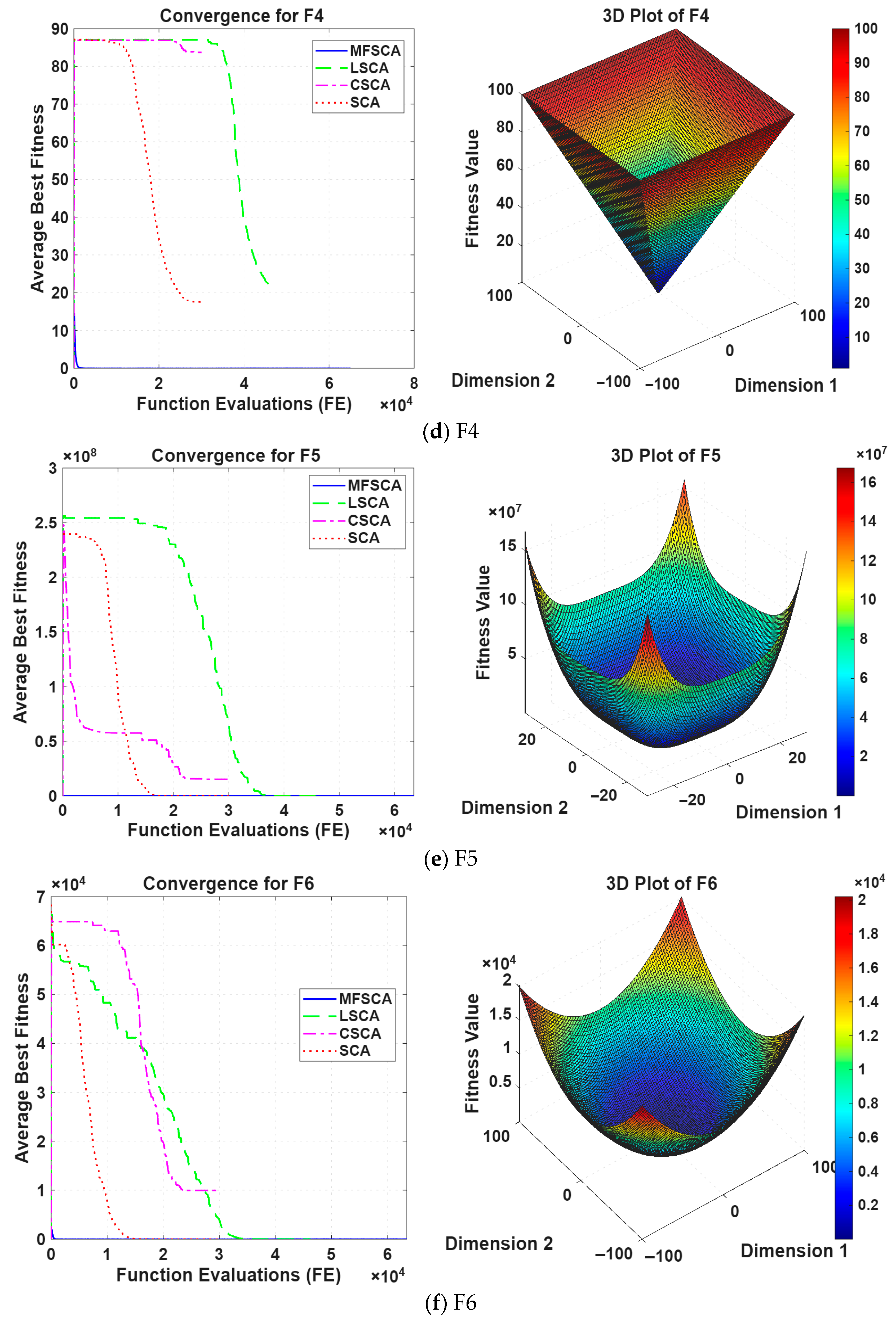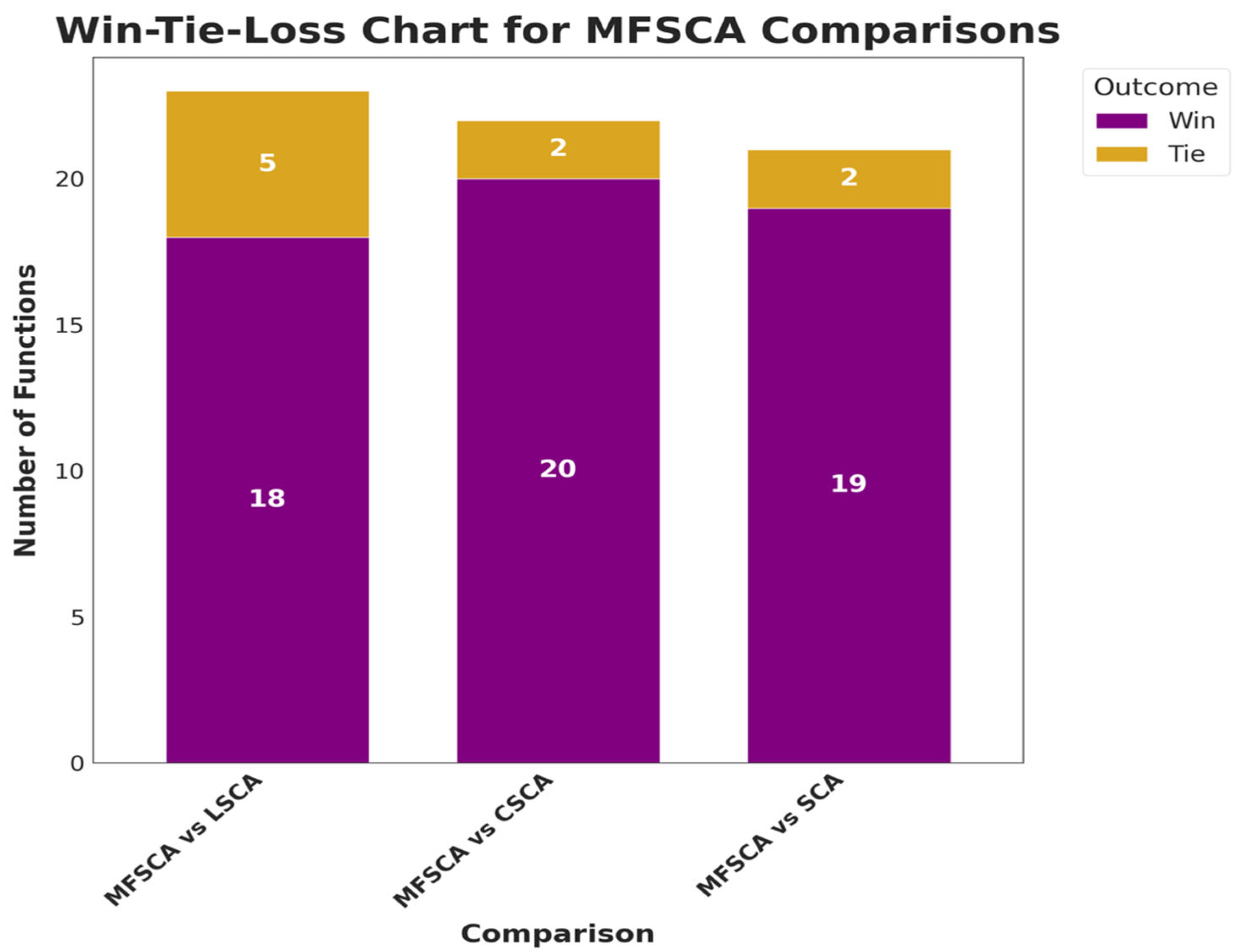 | Functions (F) | MFSCA vs. LSCA | MFSCA vs. CSCA | MFSCA vs. SCA |