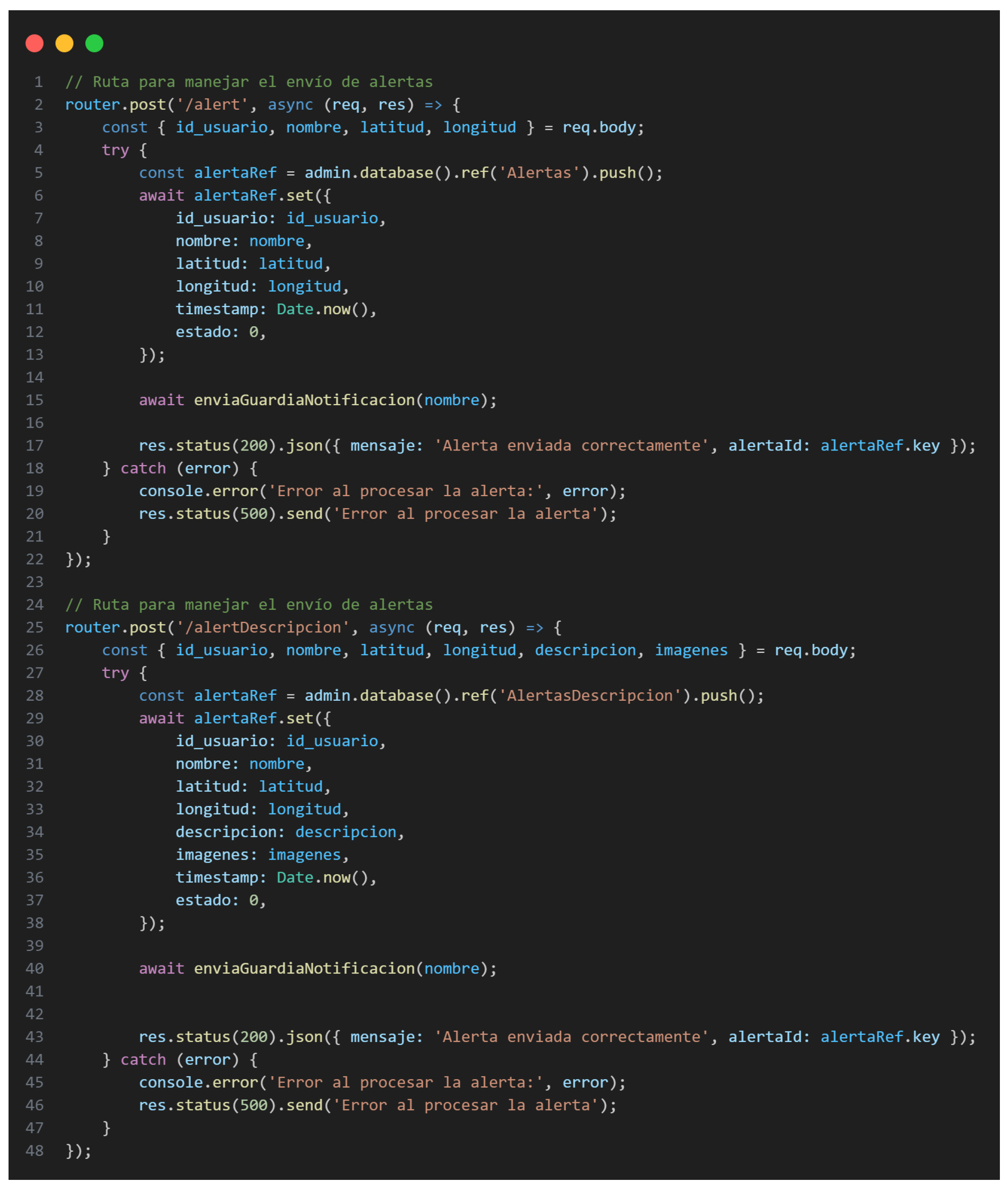 The second set of requirements corresponds to the security guard role, whose responsibilities are focused on responding to alerts, coordinating assistance, and reporting outcomes. Unlike members of the institutional community, security guards belong to an external company and therefore do not have institutional email accounts. For this reason, a dedicated registration process was implemented for them, managed directly by the Institutional Security Unit. These functionalities allow guards to interact with user-submitted alerts, track locations in real time, and generate operational reports, thereby ensuring a rapid and efficient emergency response, as shown in