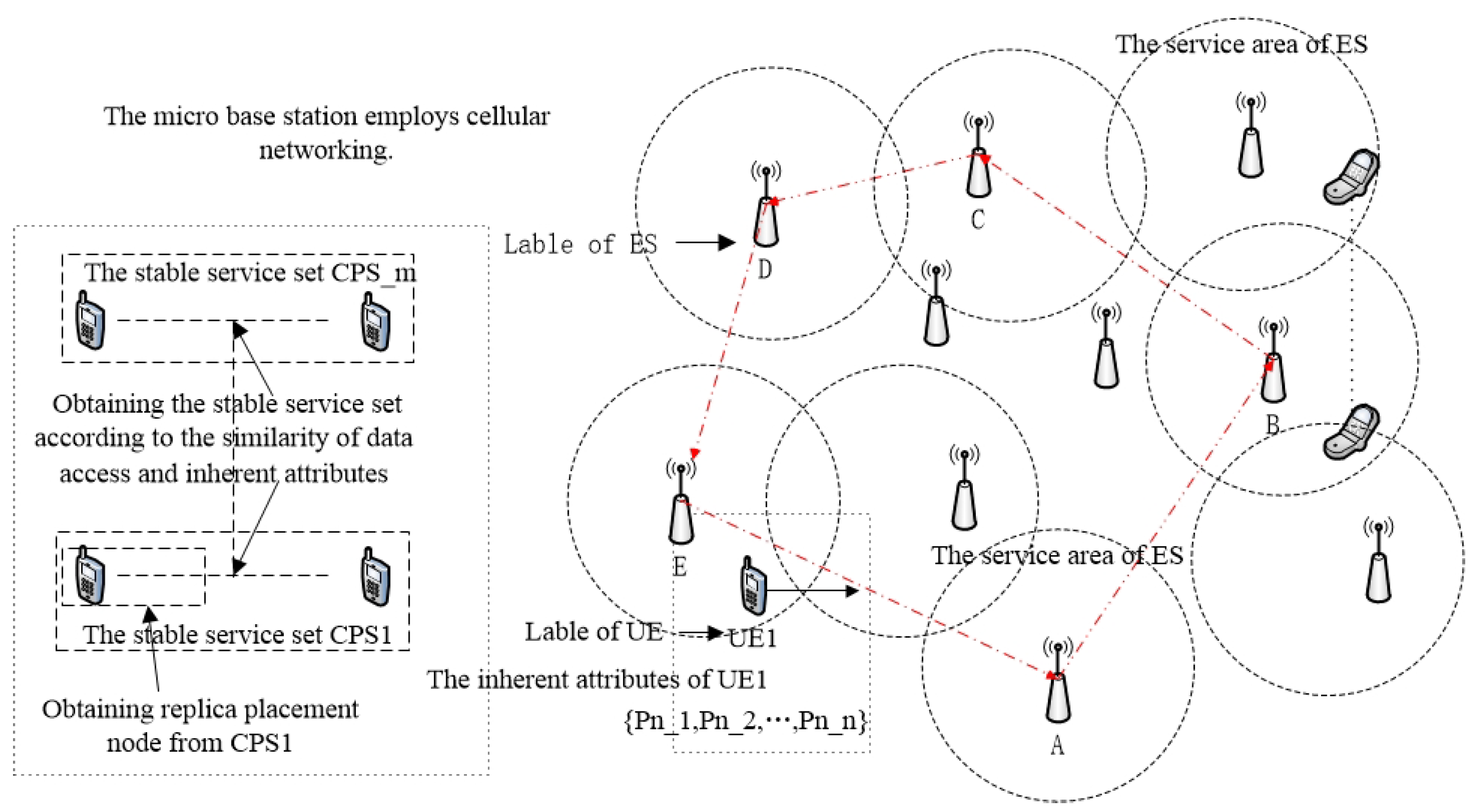 23]. To fulfill the data access requirements of various geographical units, traditional replica placement methodologies typically select “hotspot” data of specific types as replicas (hotspot data denotes data that has been frequently requested per unit time). However, in Edge, UE is time-varying and may be situated in diverse geographical units at different times, rendering it difficult to measure the hotspot data of specific types.
