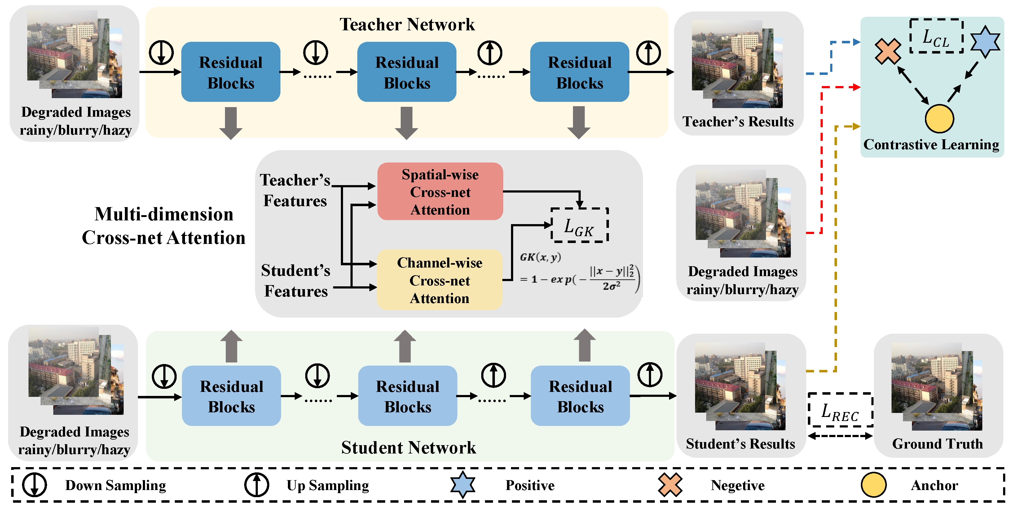 Figure 10 further validate these findings, illustrating that the inclusion of the MCA mechanism and contrastive learning significantly enhances the visual quality of restored images. These results demonstrate the effectiveness of our proposed components in improving the distilled model’s performance.