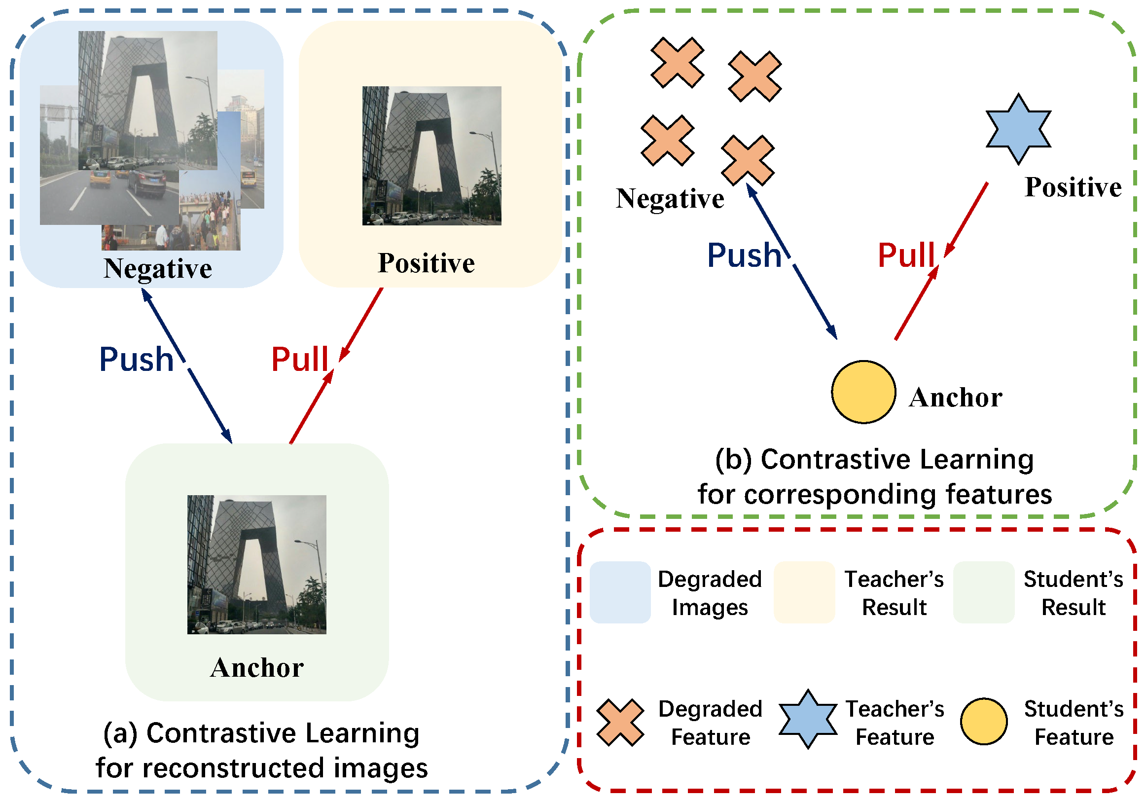 Contrastive learning loss (): This loss further enhances the model’s performance, adding a 0.25 dB gain in PSNR and a 0.004 improvement in SSIM.