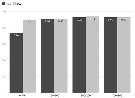 | Classifier | Measure | 64 × 64 Resolution | 100 × 100 Resolution | 200 × 200 Resolution | 300 × 300 (Original Resolution) |