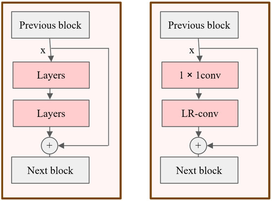 The left picture is the original Resblock; the right picture is how LR-Conv combines with Resblock.