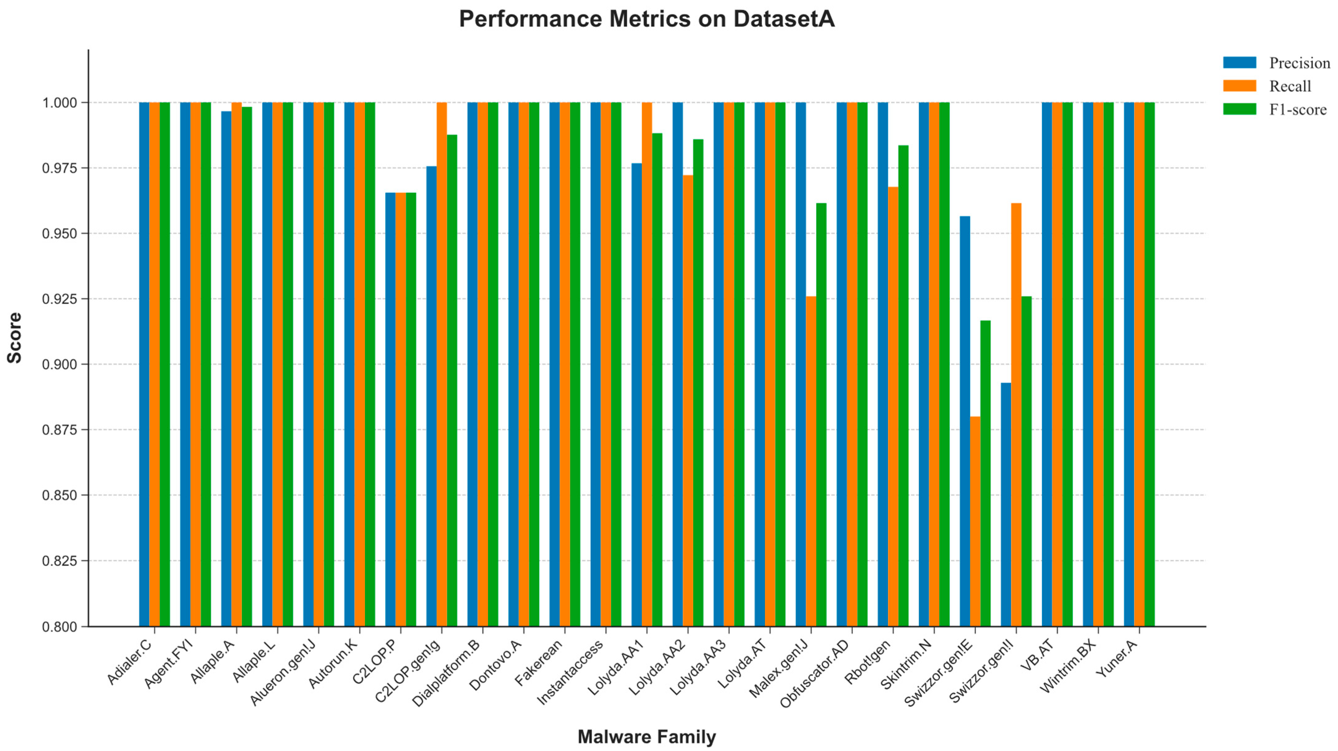 - Vasan, D.; Alazab, M.; Wassan, S.; Naeem, H.; Safaei, B.; Zheng, Q. IMCFN: Image-based malware classification using fine-tuned convolutional neural network architecture. Comput. Netw. 2020, 171, 107138. [Google Scholar] [CrossRef]