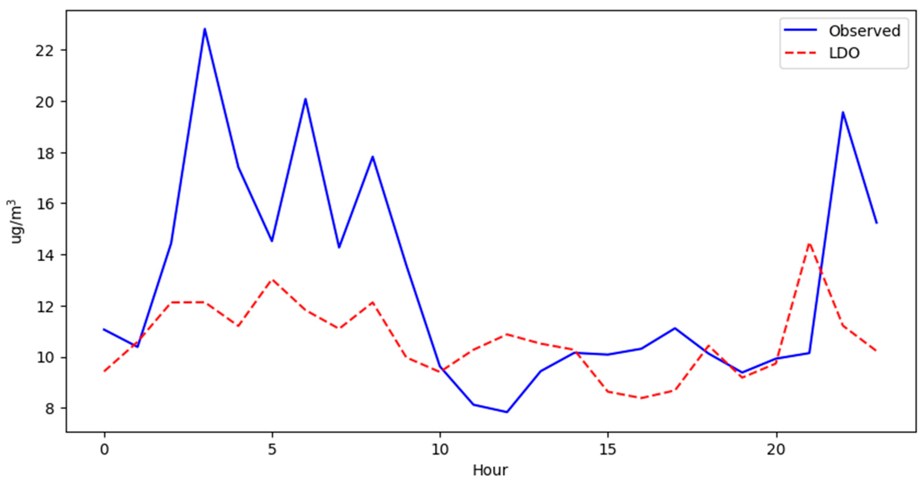 Fourth, the proposed model is univariate, as it only considers PM2.5 levels; for future work, a multivariate model could be implemented by including other variables, such as wind speed, wind direction, humidity, precipitation, solar radiation, altitude, and vegetation cover. It is also important to highlight that a multivariate model will require a larger amount of data, as well as variables that are highly correlated with the PM2.5 levels to be predicted.