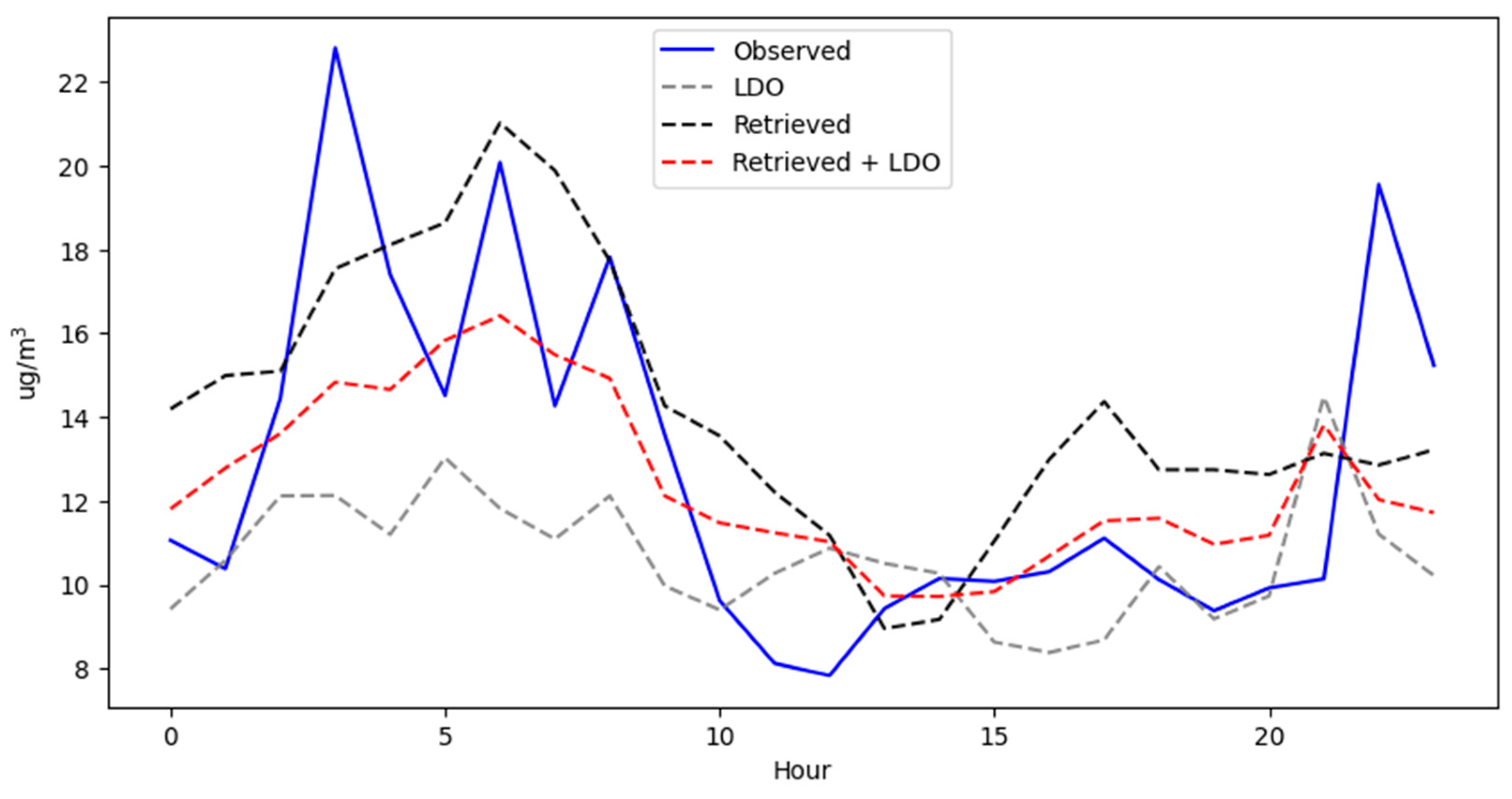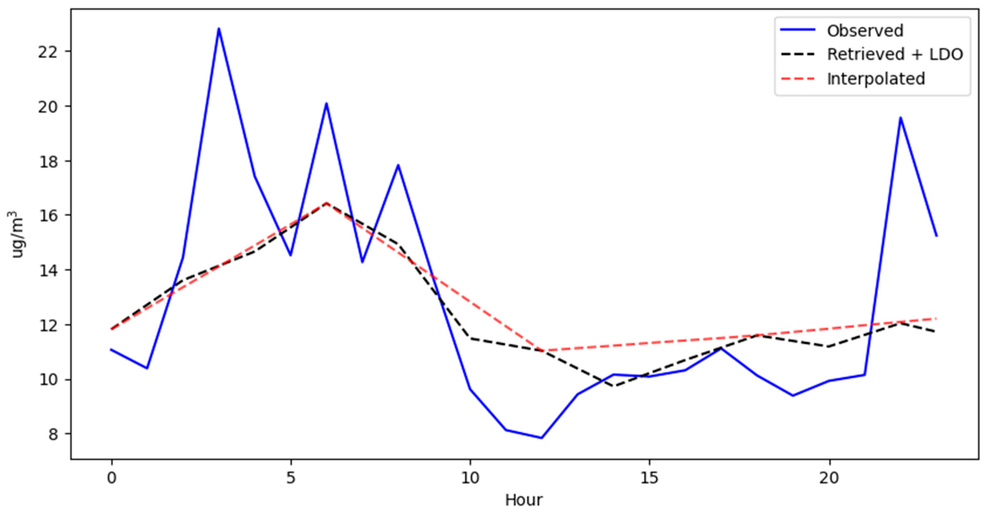 Table 7, in terms of the R correlation, all the elements of the model contribute positively to improving the correlation level in the stations, except for linear interpolation at the Espinar station, which instead of increasing the correlation of LDO + retrieved (0.5470), decreases it to 0.5332.