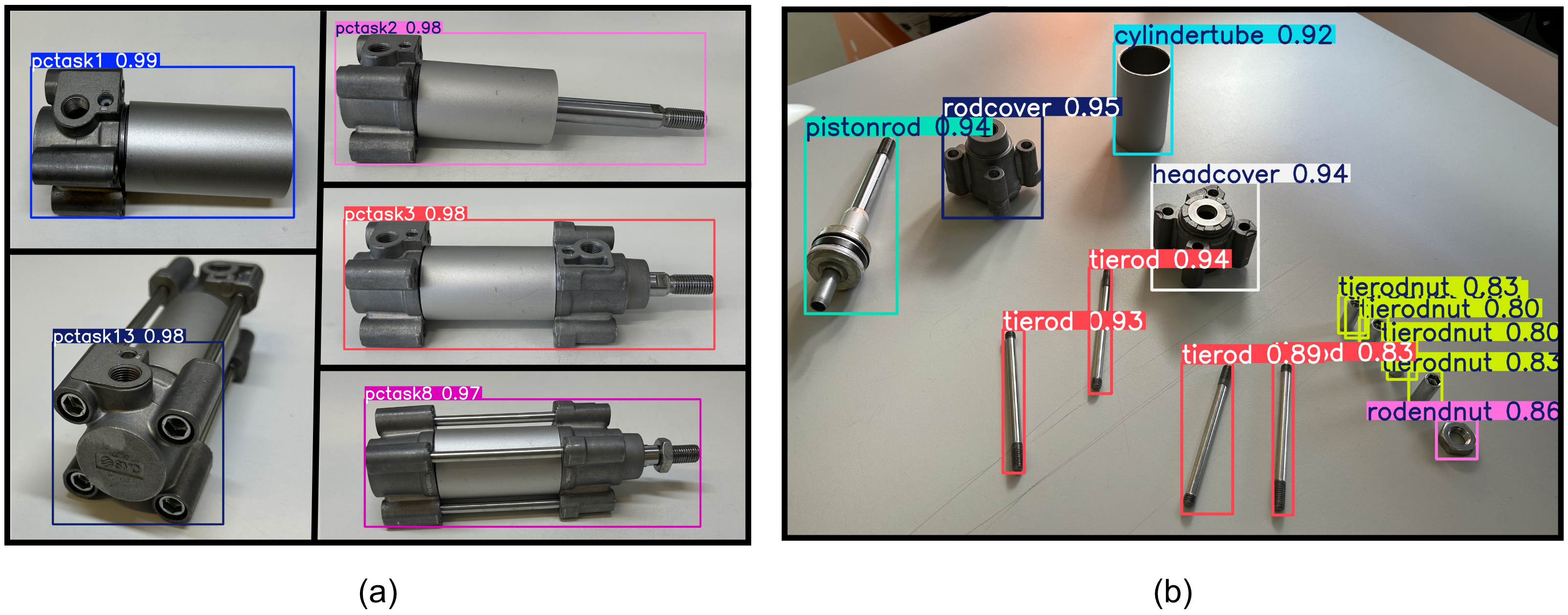 Performance of customized YOLOv8 models. (a) Detecting parts; (b) monitoring assembly.