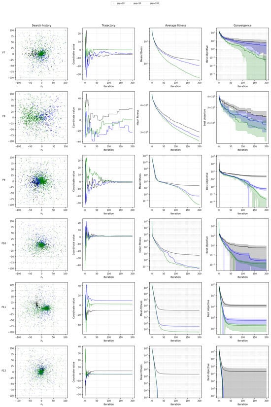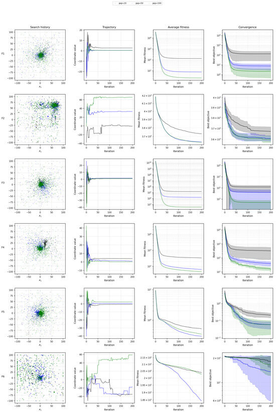 This demonstrates that exploration arises from the variance of the random terms (differential mutation, swell, and Lévy drift), while exploitation is driven by two biased forces toward distinct anchors. Hence, REO’s exploration/exploitation balance is structurally different from GA, DE, and PSO.