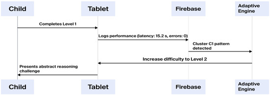 To maintain age-appropriate difficulty levels and reinforcement patterns, all game modules were co-designed with special educators. The game content comprised adaptive cognitive-training modules focusing on matching, pattern recognition, memory span, sequencing, and symbolic reasoning. Modules were dynamically tailored to each child’s cluster profile, while built-in logs recorded task-specific accuracy, completion time, and hint usage. These logs were encrypted and transmitted via secure HTTPS to a protected research server for analysis. The application also incorporated embedded usability probes, in-session pop-ups, and touch-delay counters to assess real-time user effort and satisfaction proxies.