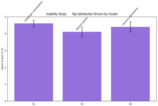 Construct validity was ensured via standardized tools, WISC and Vineland, and operational usability definitions. Internal validity was enhanced through consistent testing conditions, randomization for subgroup balancing, and blinding of test administrators. Triangulation across data types (quantitative scores, usability logs, ethnographic observations, interviews) helped to cross-verify findings. Reliability was supported by independent double-coding of transcripts () and procedural documentation for replication. Sample size was validated through power analysis, and dropout tracking showed 100% retention. Though external validity is constrained to children with mild-to-moderate ID in school/clinical settings, contextual diversity in participants (age, comorbidities, environments) enhances generalizability within similar populations. A novel contribution of this study is the use of comorbidity-based personalization via clinically informed clusters. These clusters, as shown in Table 4, guided both the intervention length and UI/UX adaptations, ensuring optimized learning conditions.
