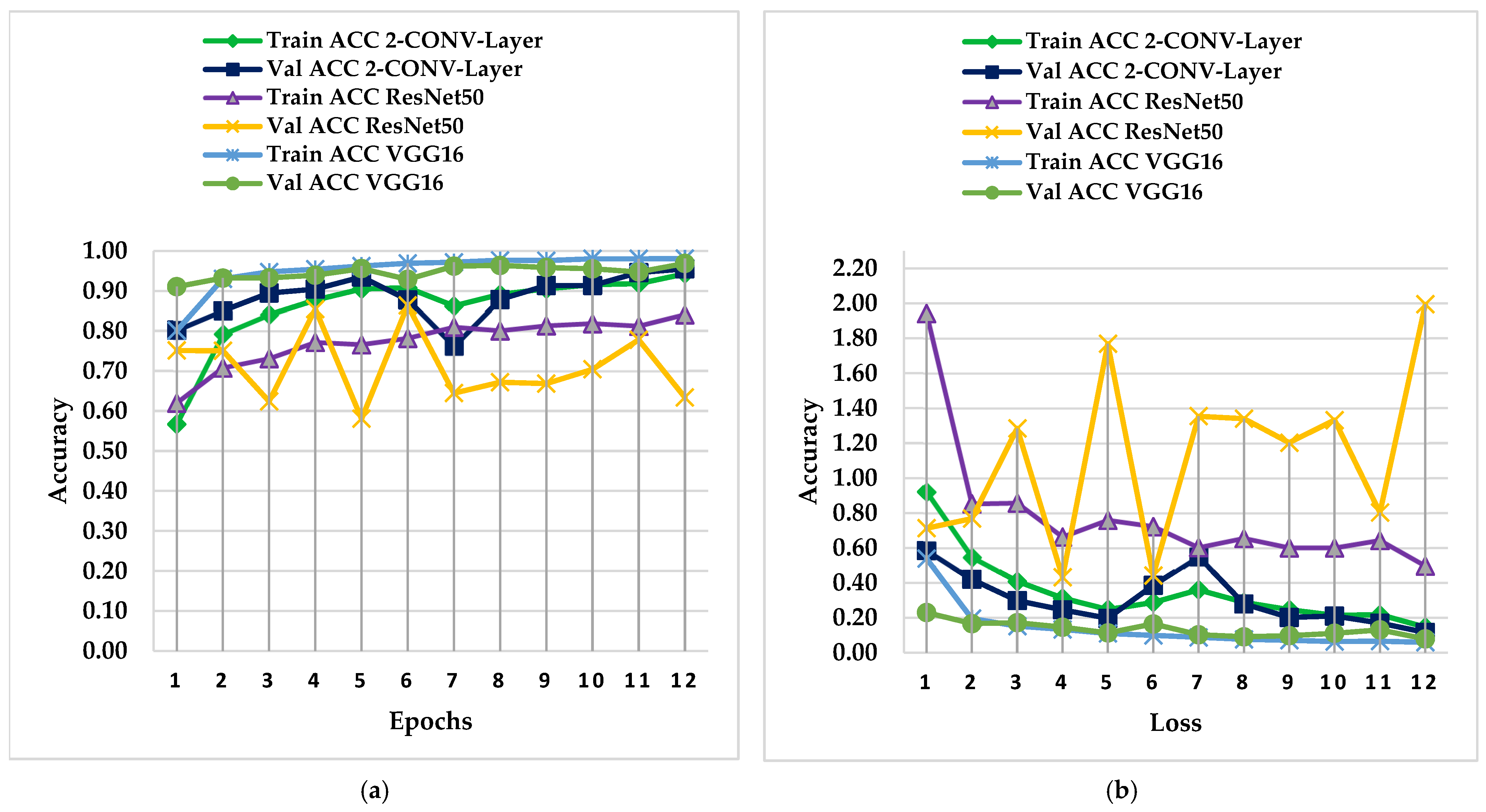 | Metrics | 2-CONV-Layer Model | ResNet50 CNN | VGG16 CNN |