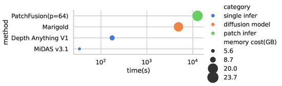 - Li, Z.; Bhat, S.F.; Wonka, P. Patchfusion: An end-to-end tile-based framework for high-resolution monocular metric depth estimation. In Proceedings of the IEEE/CVF Conference on Computer Vision and Pattern Recognition, Seattle, WA, USA, 16–22 June 2024; pp. 10016–10025. [Google Scholar]