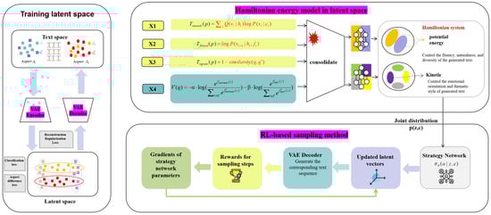 - We define an energy model based on the Hamilton function, placing it within the latent space and embedding multiple constraints into this energy field: kinetic energy governsthe fluency, naturalness, and diversity of generated text, while potential energy guides the target topic and emotional orientation, thereby coordinating the differences between various attributes during text generation.