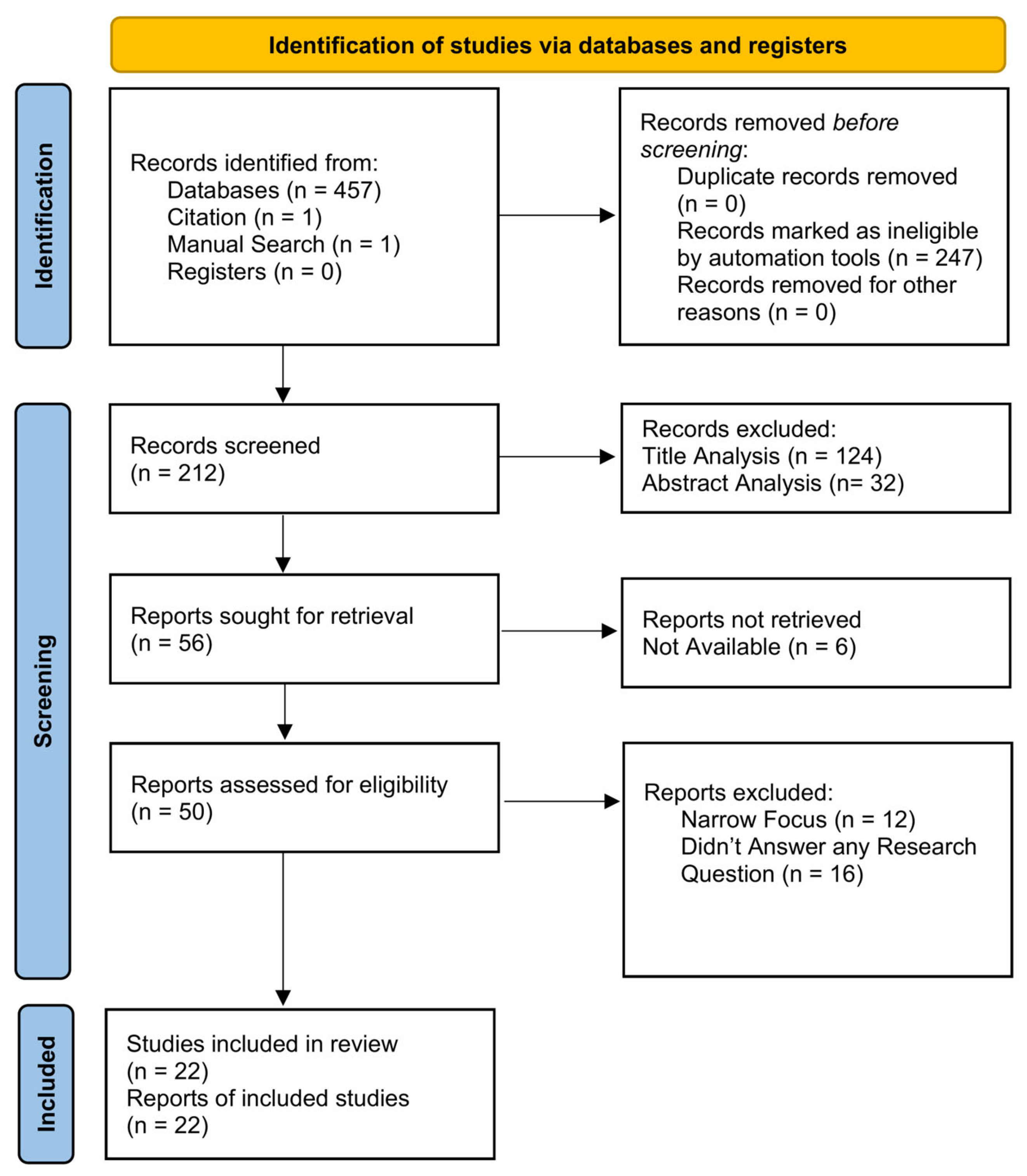 - Subjectivity in Manual Screening: The final step in the article selection process involved a manual review of 210 articles based on their abstracts and the defined inclusion and exclusion criteria. This human screening, which narrowed the selection to the final 22 papers, is inherently subjective. While necessary, this process relies on the researcher’s interpretation, and there is a possibility that this judgment could have led to the unintentional exclusion of some relevant studies.