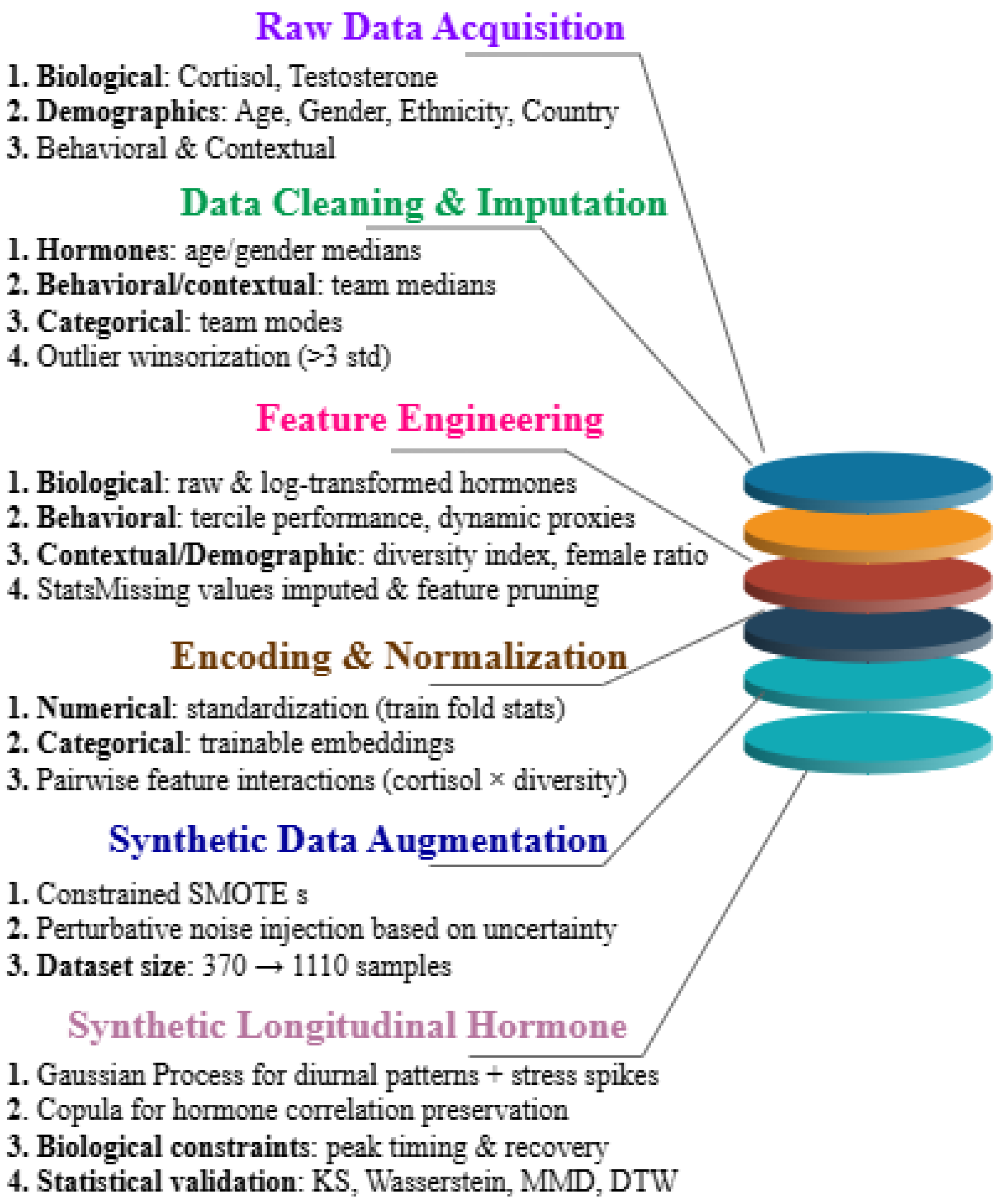 20]. These gaps underscore the necessity for integrative frameworks that amalgamate multimodal biological, behavioral, and contextual data to dynamically and interpretively predict stress, performance, and hormonal health [