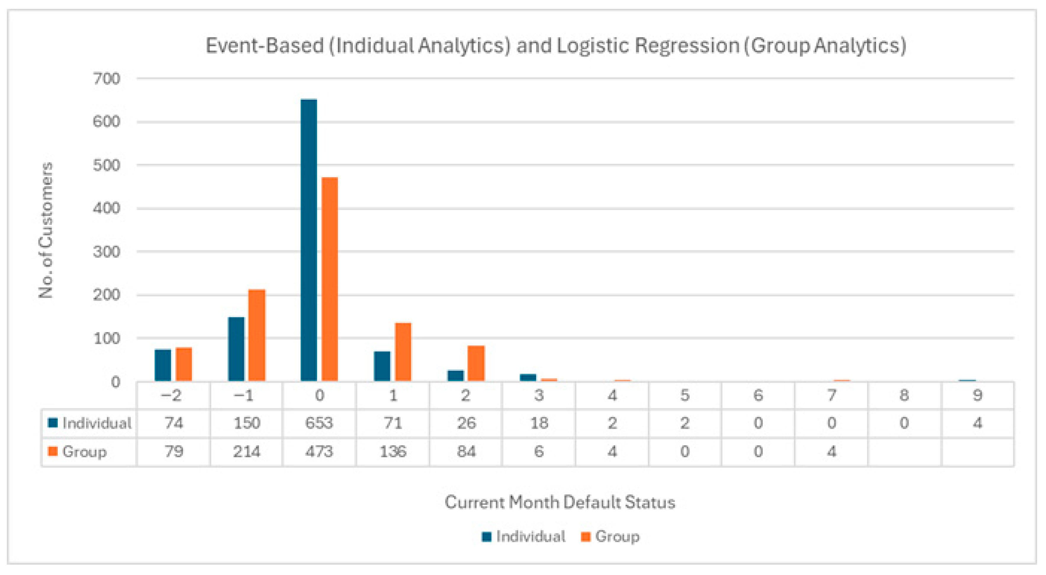 In other words, for the same 1000 customers, the statistical model pushes more accounts into high-risk buckets, reflecting its threshold probability view of risk.