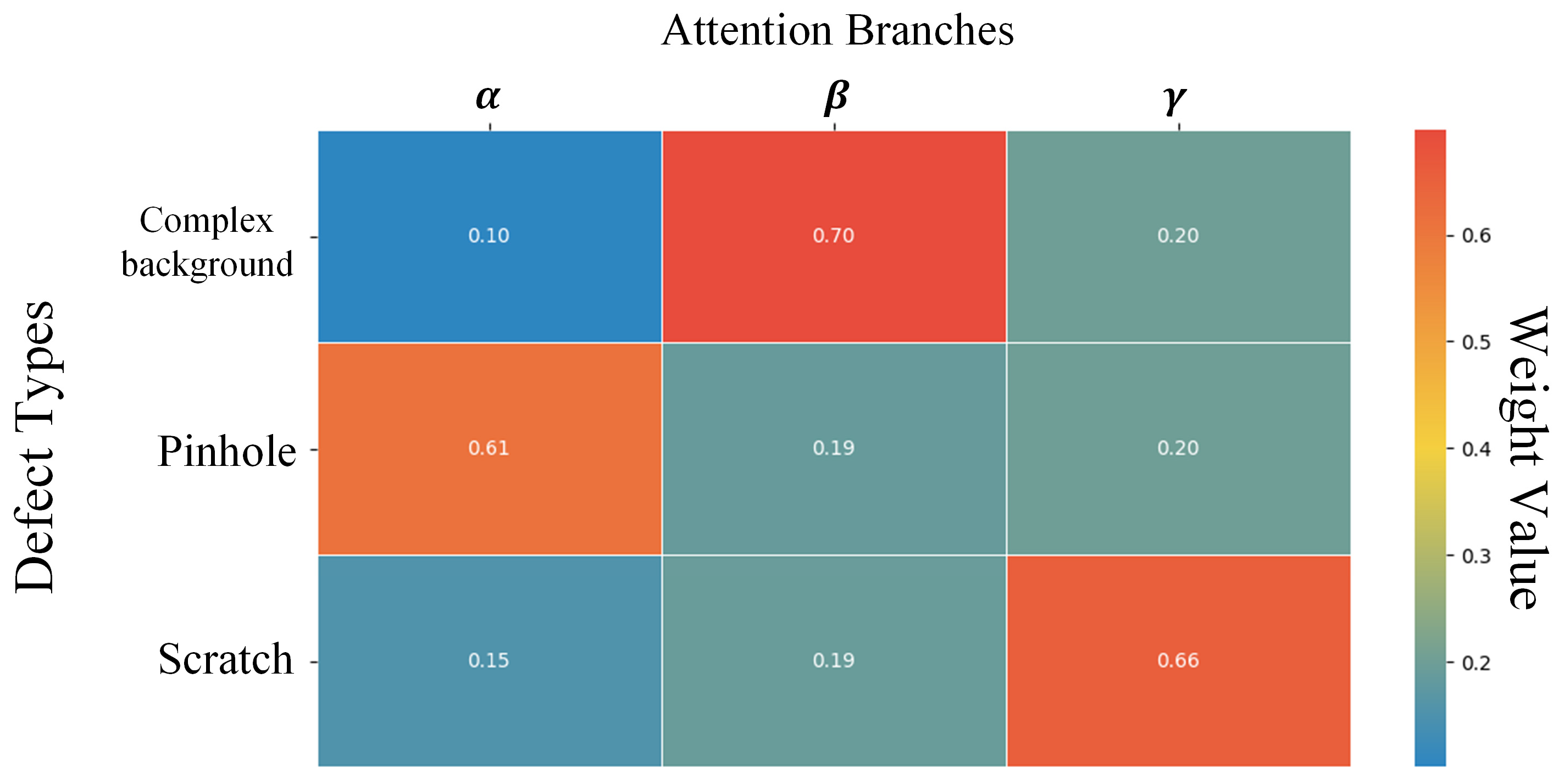 - The Adaptive Multi-branch Attention (AMBA) mechanism is innovatively designed. Unlike existing single-branch (e.g., ECA-Net [14]) or sequentially fused attention mechanisms (e.g., CBAM), AMBA employs parallel branches to extract channel, width, and context features simultaneously. Crucially, it introduces an Adaptive Reweighting Algorithm (ARA) to dynamically adjust the fusion weights of these branches based on the input defect type, overcoming the limitations of static, one-size-fits-all attention allocation.