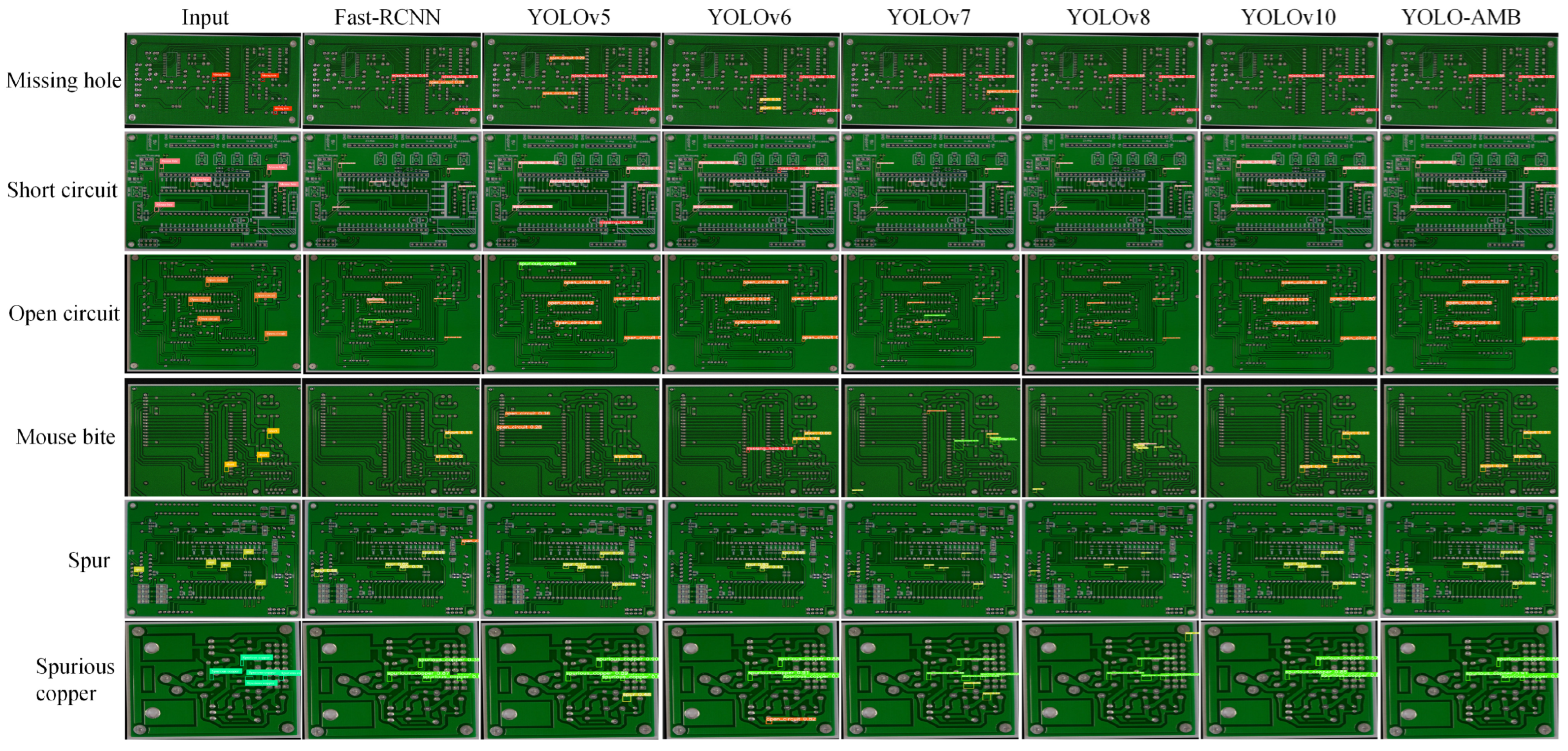 - Chaudhari, A.; Upganlawar, V.; Barve, T.; Vaidya, R.; Shelke, D. Analysis of YOLO V3 for Multiple Defects Detection in PCB. In Proceedings of the 2024 Parul International Conference on Engineering and Technology (PICET), Vadodara, India, 3–4 May 2024; pp. 1–6. [Google Scholar] [CrossRef]