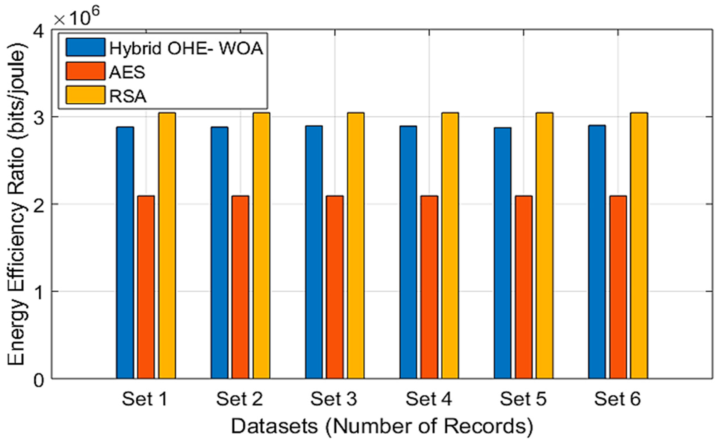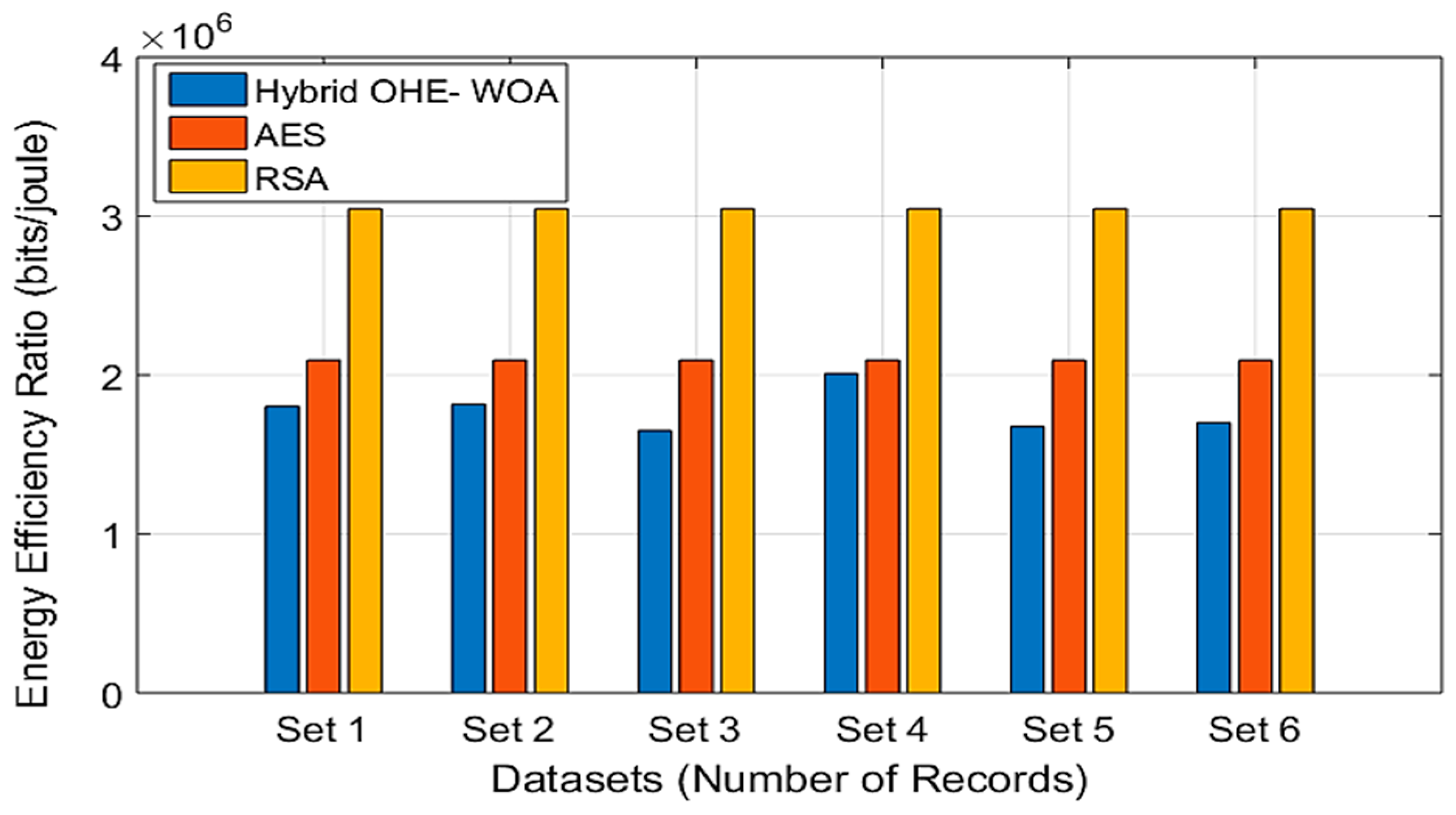 Figure 6 show a comparative analysis of the energy efficiency ratio across the two datasets in an IoMT environment [