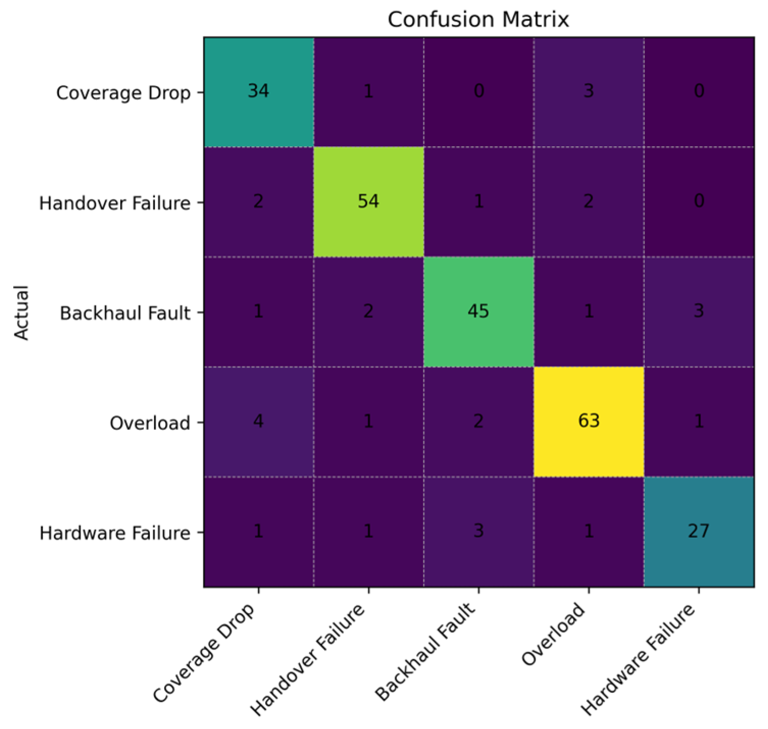 | Backhaul Fault | 0.96 | 0.90 | 0.93 | 50 |