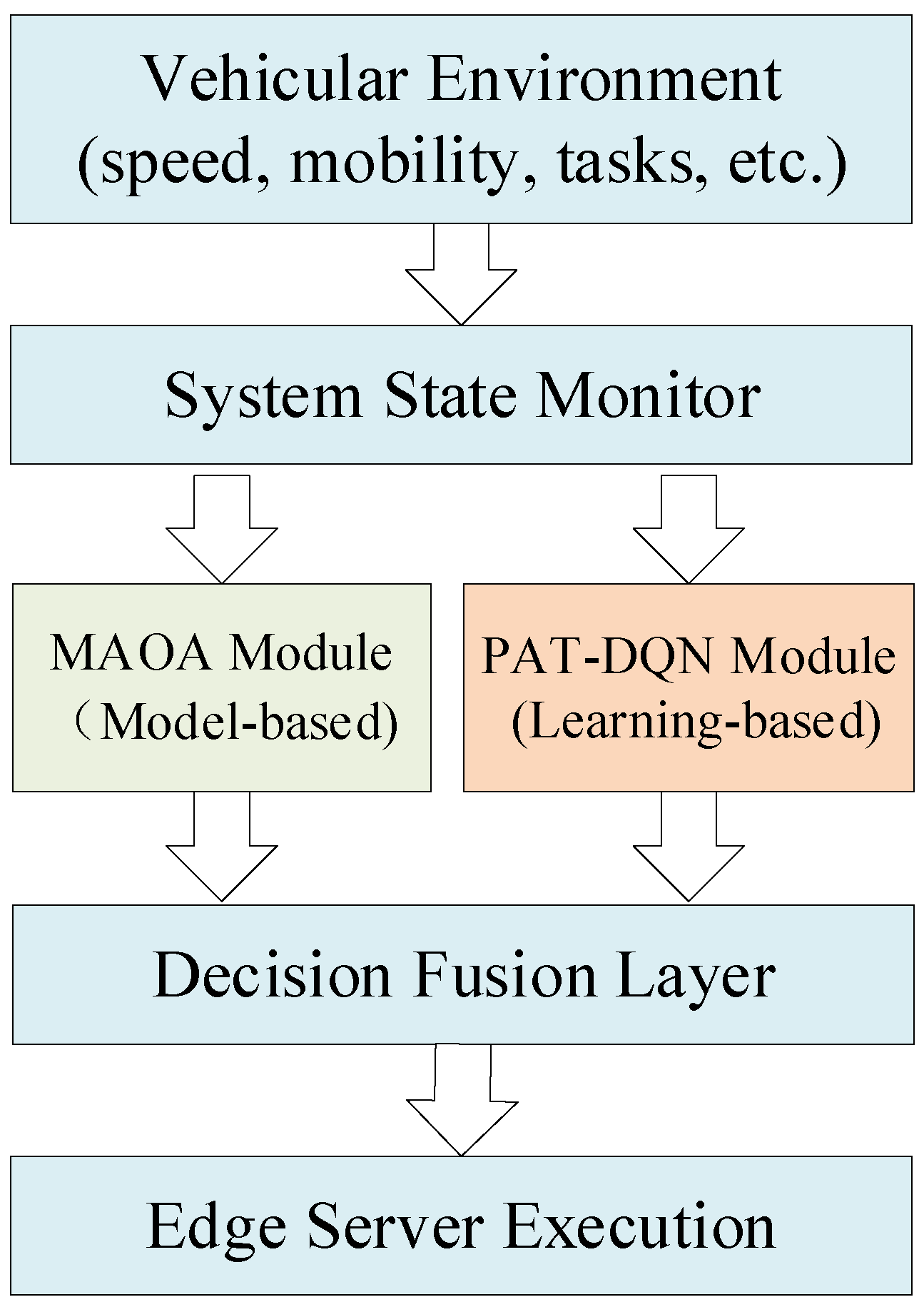 (2) Making decisions based on missing information in the edge node. Due to the mobile nature of vehicles and the constantly changing state of edge servers, the selection of the target server can become uncertain and complex. Some methods use learning-based approaches to handle uncertainty. For example, Liao et al. [
