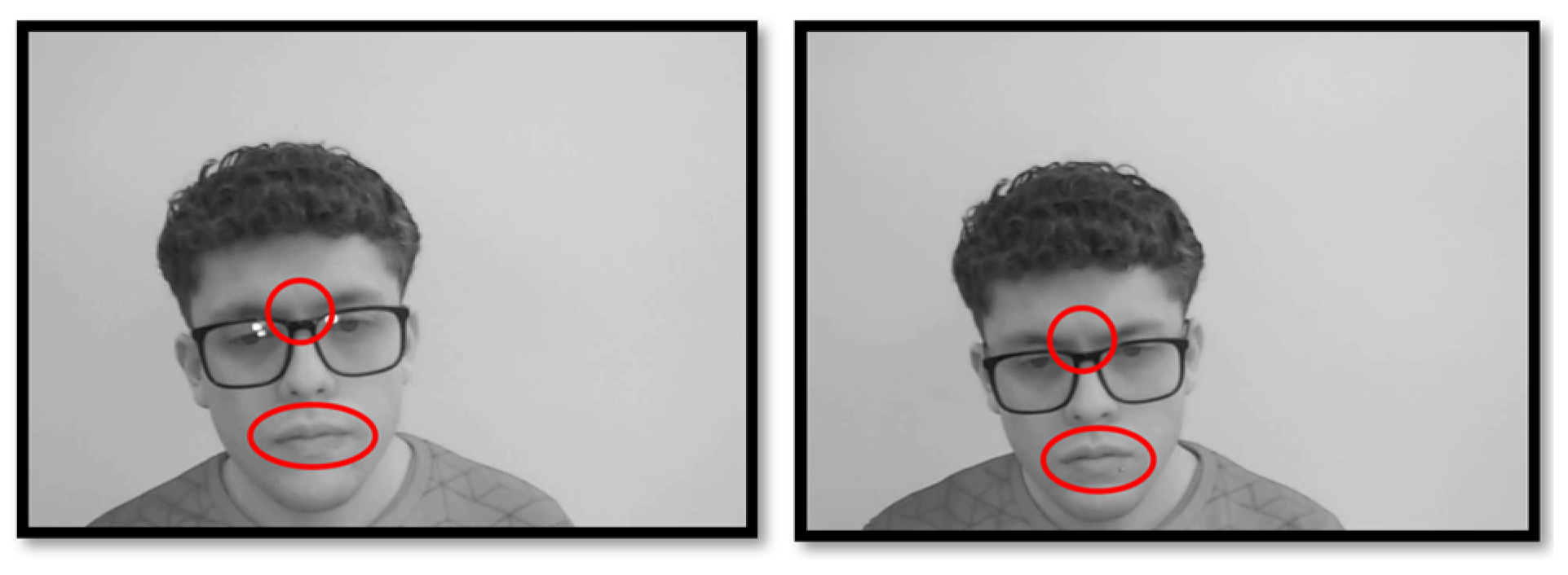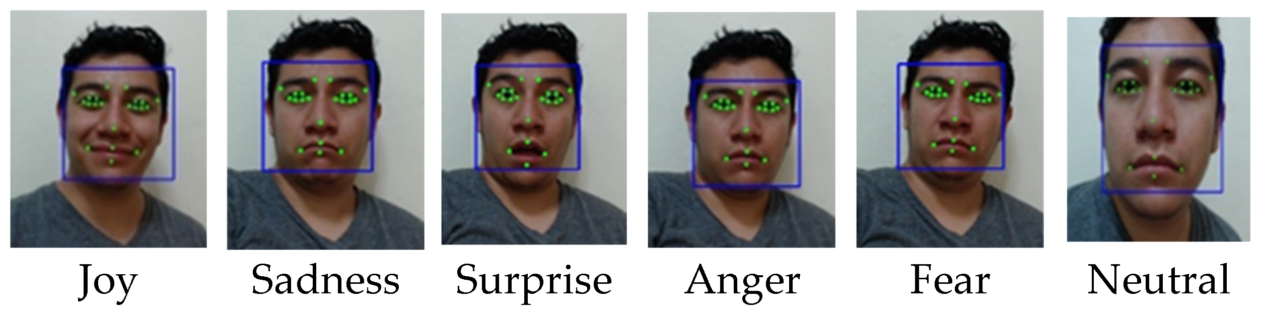 - Ekman, P.; Harrieh, O. Expresiones faciales de la emoción. Annu. Rev. Psycology 1979, 30, 527–554. [Google Scholar] [CrossRef]