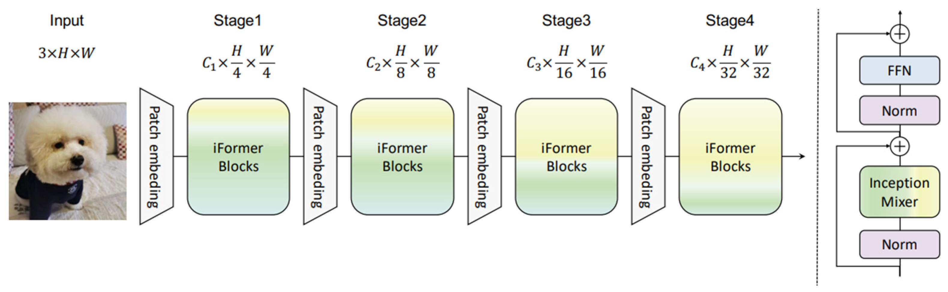 - Si, C.; Yu, W.; Zhou, P.; Zhou, Y.; Wang, X.; Yan, S. Inception Transformer. Adv. Neural Inf. Process. Syst. 2022, 35, 23495–23509. [Google Scholar]
