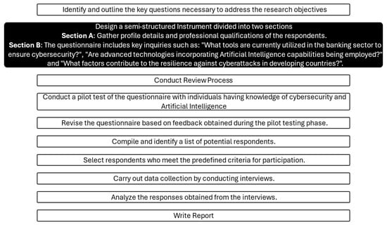 The present study employed a thematic analysis technique to assess the factors contributing to the variation in cyberattacks in developed and developing countries. A systematic approach was used to conduct this study to avoid bias. The study used semi-structured interviews for qualitative data collection. A semi-structured interview provides robust findings [18]; hence, the study employed semi-structured interviews for data collection. A five-step guide was employed to develop the instrument. These steps included identifying the basis for using the instrument, finding literature, developing an initial draft, conducting a pilot study, and preparing the final draft [19]. Hence, three experienced academicians were asked to review the designed instrument for reliability after developing the initial draft. The recommendations of these experienced researchers were implemented to enhance the instrument’s reliability. In the next phase, a pilot study with two researchers was conducted. These participants had satisfactory knowledge of cybersecurity and advanced technology applications. Afterwards, the final draft was developed.