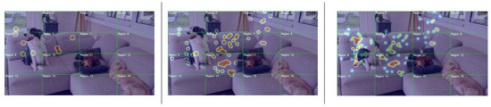 The model’s gaze-tracking performance was further analyzed using heatmap visualizations of static images and video content displayed on a grid, as shown in Figure 12 and Figure 13, which showcase data from one individual. The heatmaps represent the regions receiving the most visual attention, with intense areas indicating prolonged gaze fixation.