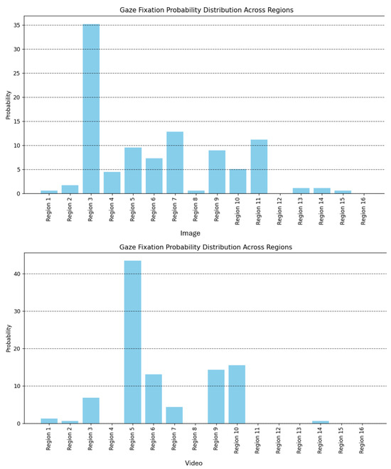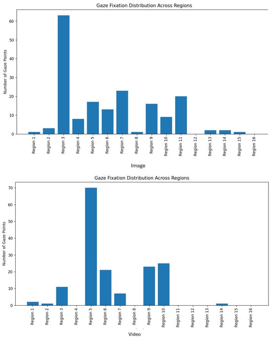 Figure 14 demonstrates the gaze fixation plots of an individual to showcase the model’s capability to accurately record the grid regions with the highest concentration of gaze points—region 3 for the static image and region 5 for the video. This fixation analysis underscores the model’s consistent performance in tracking visual focus across both static and dynamic content.