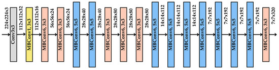 Figure 5 illustrates EfficientNet Lite2’s architecture, where the input passes through an initial 3 × 3 convolution followed by a series of Mobile Inverted Bottleneck Convolution (MBConv) layers with varying kernel sizes (3 × 3, 5 × 5). These layers progressively down sample and extract hierarchical features while maintaining computational efficiency. The final 7 × 7 convolutional layer refines the extracted features before classification.