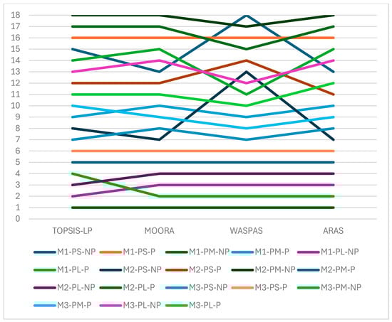 In the second phase, various MADM techniques were employed to perform a comparative analysis Figure 9 shows the comparison of the proposed TOPSIS-LP model with other MADM approaches: MOORA [], WASPAS [], and ARAS [].
