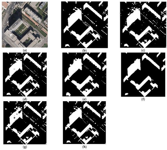 - Fang, H.; Wei, Y.; Luo, H.; Hu, Q. Detection of Building Shadow in Remote Sensing Imagery of Urban Areas with Fine Spatial Resolution Based on Saturation and Near-Infrared Information. IEEE J. Sel. Top. Appl. Earth Obs. Remote Sens. 2019, 12, 8. [Google Scholar] [CrossRef]