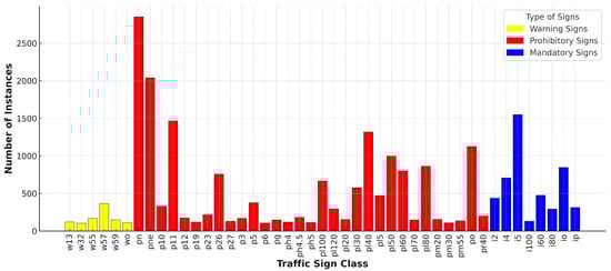 Distribution of traffic sign instances by class.