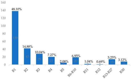 The objective of the online questionnaire survey of computer science teachers was to find out their perceptions regarding the concept of “digital literacy”, the methods they use in their lessons to develop digital literacy among pupils, and what an obstacle in this process is. As shown in Figure 1, the survey revealed that 139 teachers (48.10%) of the total number of respondents who participated (289 people) believe that digital literacy is “A set of knowledge and skills that are necessary for safe and effective use of digital tools and technologies, as well as Internet resources”. In contrast, 43 participants (14.88%) characterised it as “Familiarization and skills to use information technology and ICT”. A divergent perspective was expressed by 29 teachers (10.04%), who defined it as “Familiarization with computer and IT. Basic knowledge of the rules of behaviour and work at the computer. Ability to work with simple programs”. The ability to find, evaluate, and communicate information through typing and other media on various digital platforms was identified as a key skill by 21 computer science teachers (7.27%), suggesting a comprehensive understanding of digital literacy concepts among the teaching community. Conversely, two respondents (R28–29, 0.7%) did not know the answer or could not give a definitive answer, while nine teachers (R30, 3.12%) did not submit any answer.