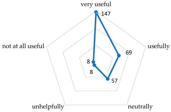 At the same time, the analysis of teachers’ responses to this question was considered using the Chi-Square inferential statistical technique. The authors used the Chi-Square test to analyse differences between categorical variables (very useful, usefully, neutrally, unhelpfully, and not at all useful), in Table 2 and Figure 3.