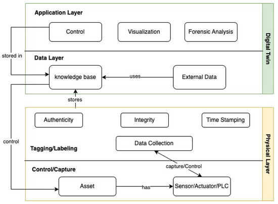 Time (t,t’): both the physical and Digital Twins operate in real-time. The time t represents the time in the physical system and represents the time in the Digital Twin. For forensic purposes, it is crucial that t and are synchronized.