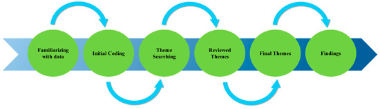 The most common techniques used for qualitative data analysis include content and thematic analyses. Both approaches enable researchers to analyze a large volume of textual data. Content analysis works on the frequency of words to identify themes and patterns [106]. However, it has an inherent limitation of overlooking potential information due to low frequency. In contrast, thematic analysis enables researchers to capture potential insights despite their low frequency [107]. Based on the study’s requirements and the advantages of thematic analysis, this study utilized this method for data analysis.