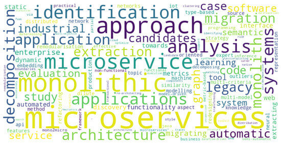 To assess the significance of our primary investigations on microservice identification, we employed word clouds as recommended in [35]. Figure 5 displays the most prevalent terms in titles and abstracts, such as microservice, architecture, and service. Terms related to identification methods like clustering, classification, and similarity were also common. The word cloud underscores the importance of the breakdown process in identifying microservices and the need for effective extraction and classification procedures.