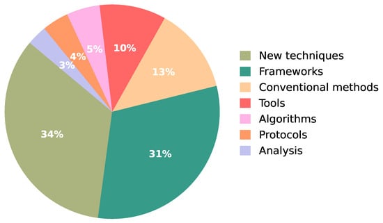 Our investigation (see Figure 7) revealed that 34% of the studies focused on new techniques for identifying microservices, while 31% proposed framework-based solutions and 13% emphasized general identification strategies. A smaller proportion of studies developed new tools (10%), algorithms (5%), or protocols (4%). Notably, 3% of the studies focused on the analysis of existing identification approaches. The authors of P20 analyzed existing identification approaches and proposed a refined framework based on insights derived from their analysis. The proposed solutions for identifying microservices can be classified into the following key categories based on their focus: