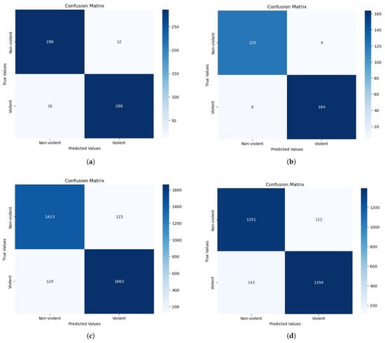 The integration of automated solutions, powered by artificial intelligence methods and algorithms, into video-surveillance systems enables better security management and efficient violence detection in all monitored areas [,]. Analysis of video scenes from security cameras using AI algorithms ensures better situational awareness in monitored areas in real time and simplifies the tedious tasks of long hours of video observation by humans. AI-based video-surveillance systems automatically detect scenes of violence and inform human operators, such as authorities, of real dangers so they can make more informed decisions about what action to take and what measures to implement. Additionally, such AI-based solutions have the advantage of operating both day and night, with the ability to detect objects at great distances and to process large numbers of video streams in real-time. All this and more is what inspires researchers with an interest in violence detection systems to meet tomorrow’s challenges and develop innovative solutions.