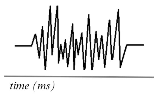 Figure 4 shows the simulation of an EMG signal generated using surface electrodes, which are currently the most commonly used in research testing. The frequency ranges of EMG signals vary between 0.01 Hz and 10 kHz, depending on the type of recording (surface or intramuscular). However, the most useful and relevant frequencies for analysis are typically 50 to 150 Hz [58,59].