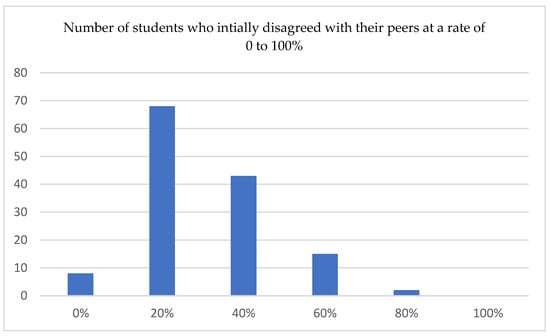 The number of students who initially disagreed with their peers at a rate of 0 to 100% (n = 136).