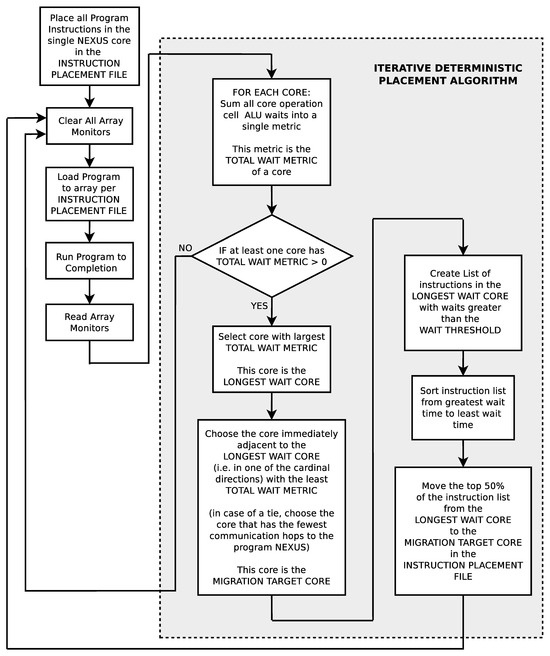 Furthermore, for configurations where the number of processor cores is less than or equal to the Amdahl limit of the placed algorithm, the genetic search algorithm generally found better instruction placement solutions than the deterministic search algorithm. The most likely reason is that the deterministic search algorithm is optimizing across only two parameters: execution wait times of individual instructions and cumulative instruction wait times in individual processor cores. On the other hand, genetic algorithms optimize across parameters (even parameters of which the designer is unaware). The random mutation mechanism statistically touches every parameter in the solution. Essentially, the genetic algorithm has more available parameters to vary than the deterministic placement algorithm.