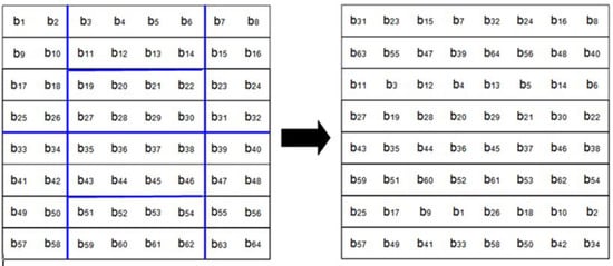 Chaotic encryption of an 8 × 8 matrix with Skey = (2, 4, 2).